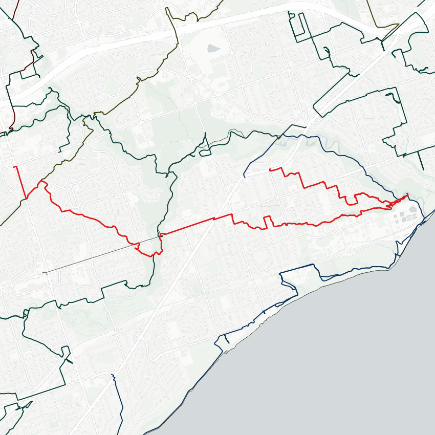 Next tributary is West Hill Creek, which branches off of Lower Highland Creek not far upstream from where it flows into Lake Ontario. My hunt for the headwater starts southeast of Lawrence and Morningside. Once again, erosion is very apparent.