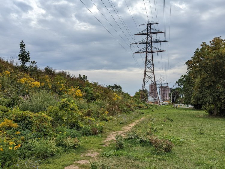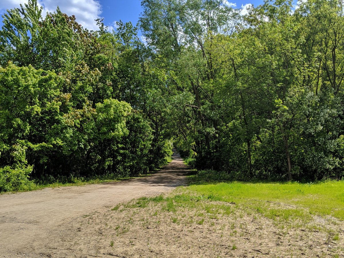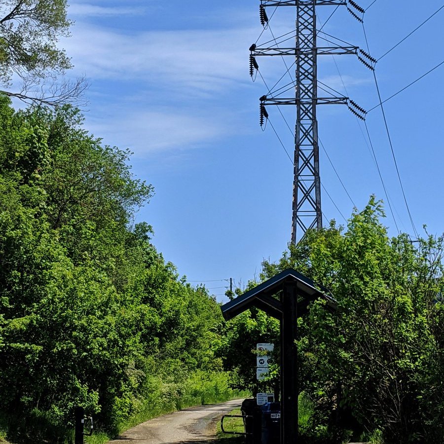 East of Walter Saunders Memorial Park, the hydro lines deke north to end at a local substation. This is where the York Beltline Trail used to end too prior to last year. Then a past wrong was finally rectified, with the trail being extended to Marlee Avenue. No further though.