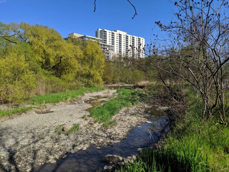 So here we are, shoehorned between the DVP/Don River & Richmond Hill Line/Bayview Extension. Why does Bayview even exist between River Street and Lawren Harris Square, or the east Gardiner + DVP exist from the Bayview ramp and Jarvis? Maybe one day a better vision will be fulfilled.