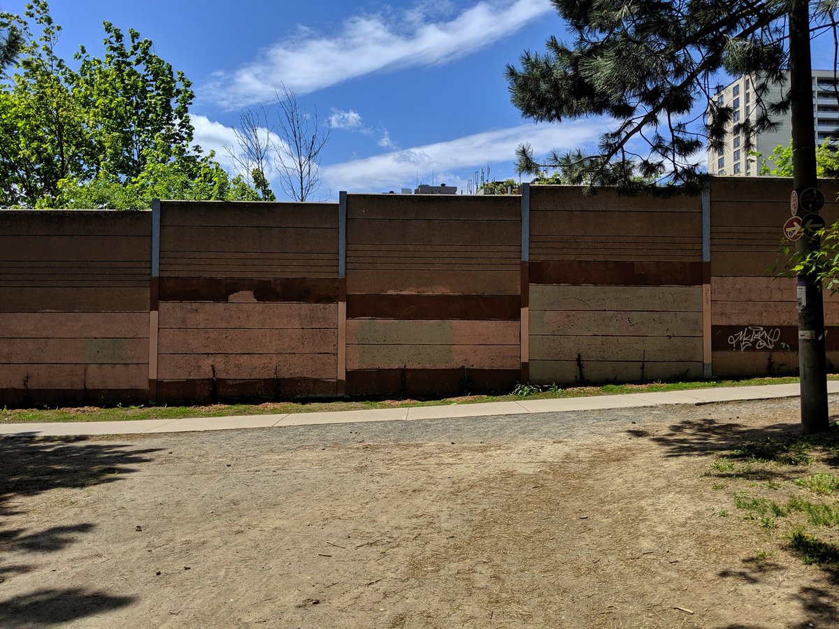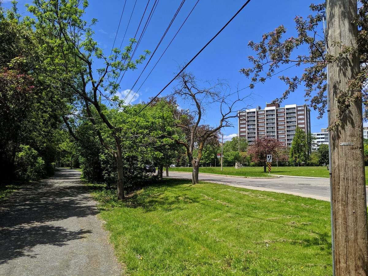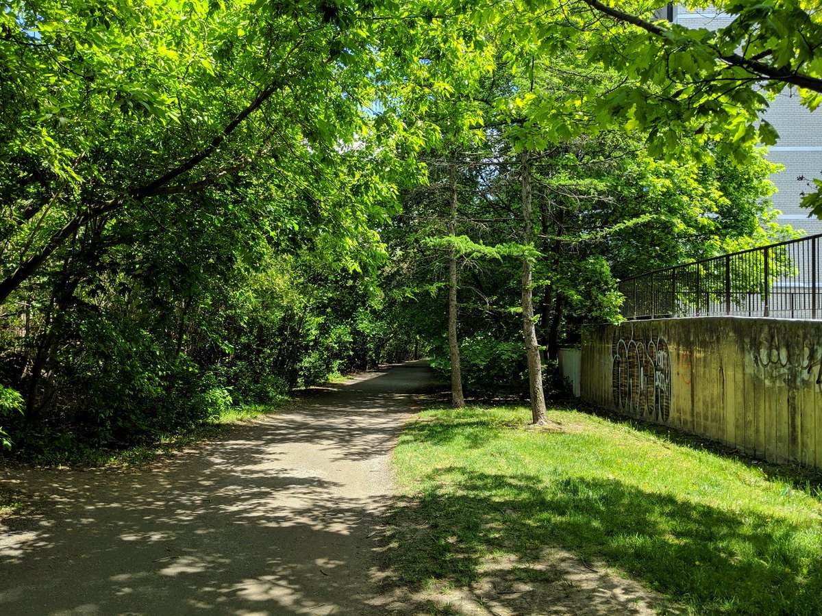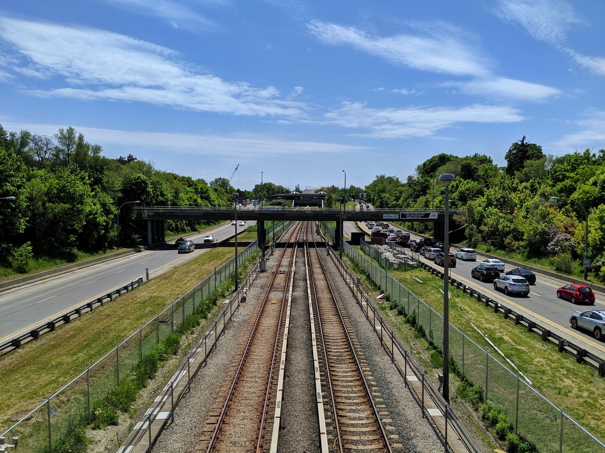 This has enraged me since I moved to Toronto. This high quality trail has a massive gap between Marlee and the east edge of the Allen. While the space of the former railway exists, part of it behind 4 apartment buildings is fenced off. Insufficient space on the bridge too.