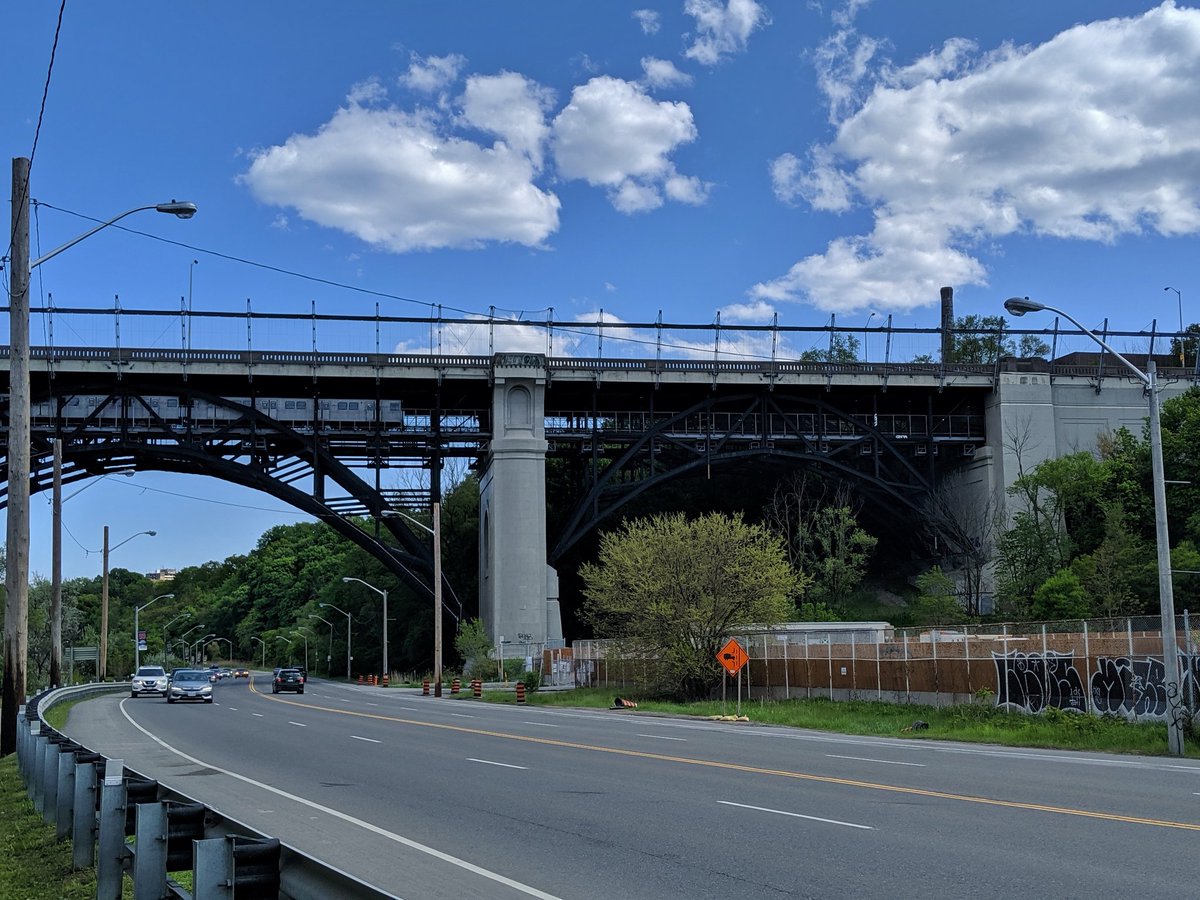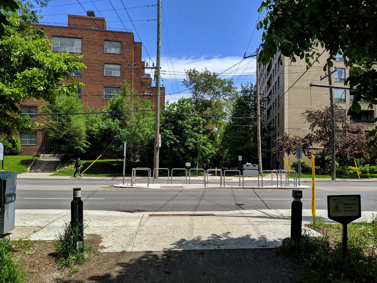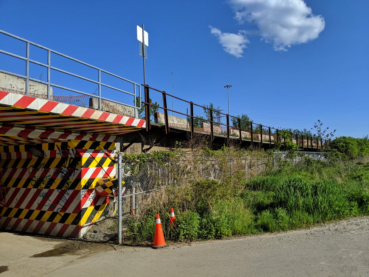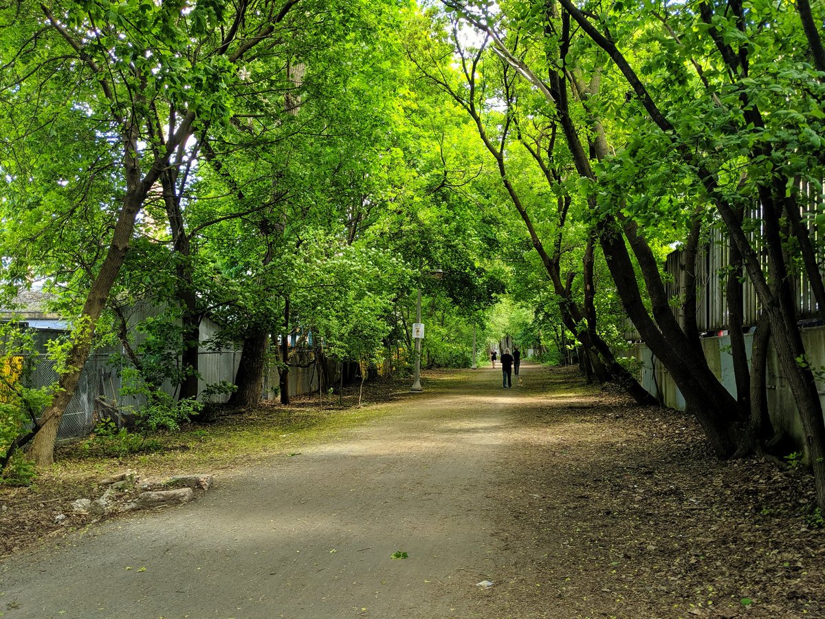 This has enraged me since I moved to Toronto. This high quality trail has a massive gap between Marlee and the east edge of the Allen. While the space of the former railway exists, part of it behind 4 apartment buildings is fenced off. Insufficient space on the bridge too.