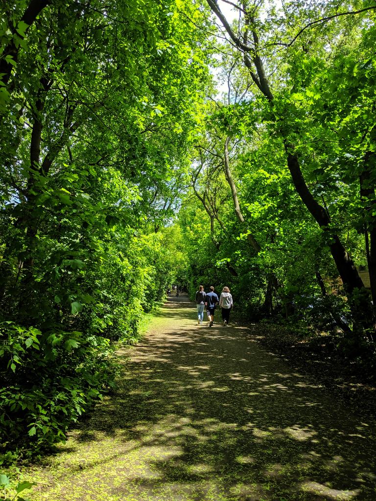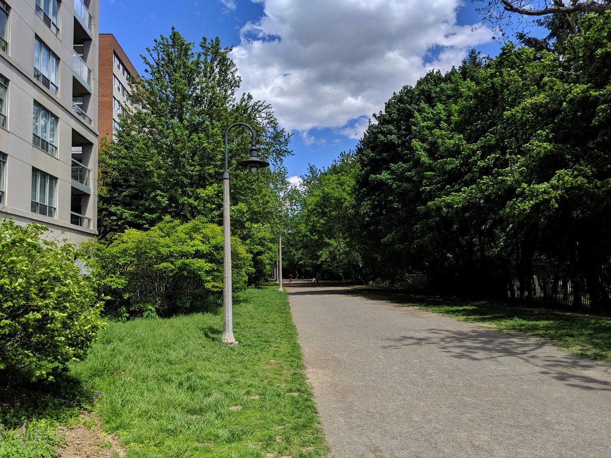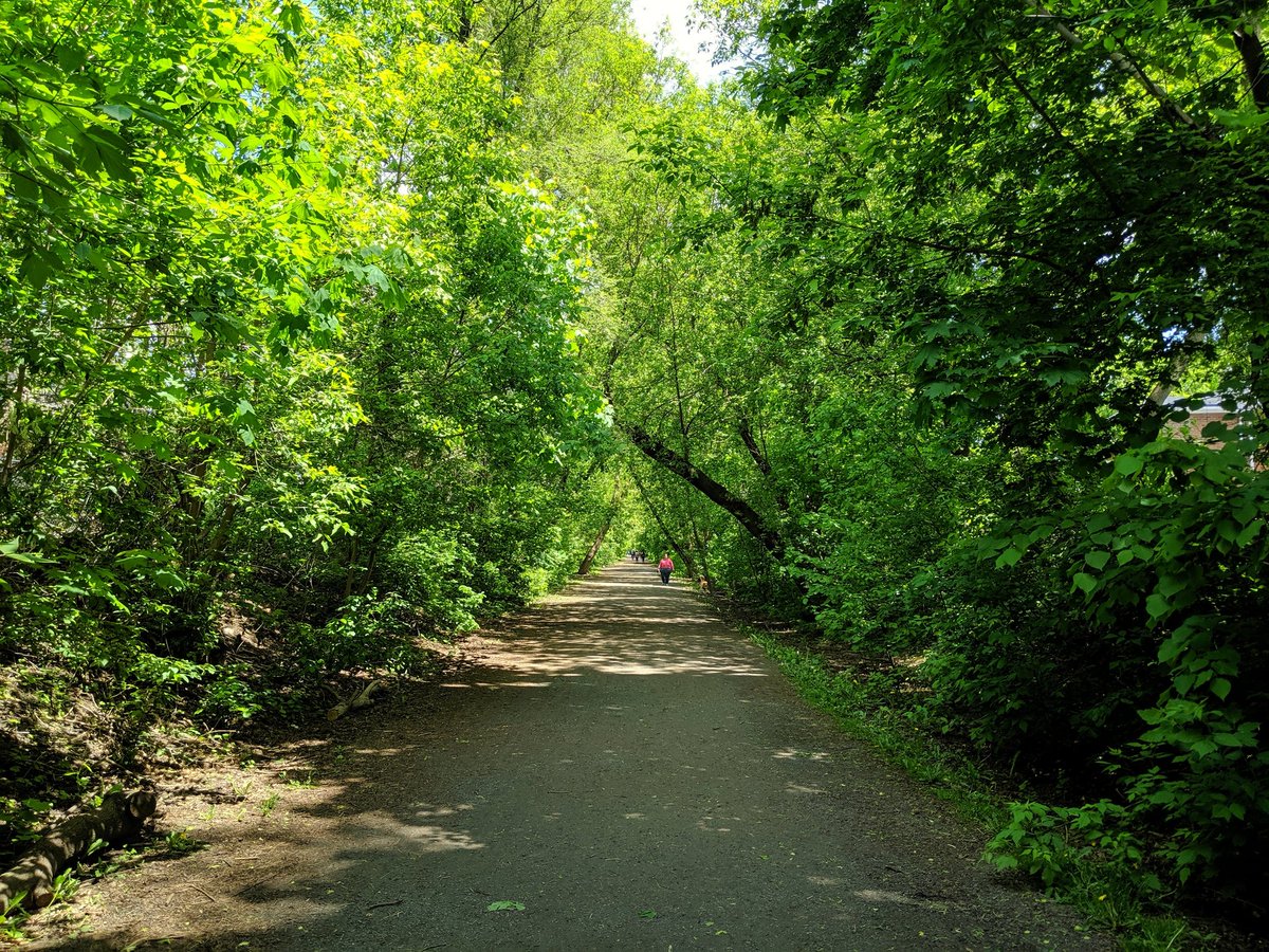 East of the Allen is the part called the “Kay Gardner Beltline Trail,” named for the driving force behind getting the city to buy it for parkland. A step above the York portion; lush with vegetation, and at least some island refuges where major roads are met.
