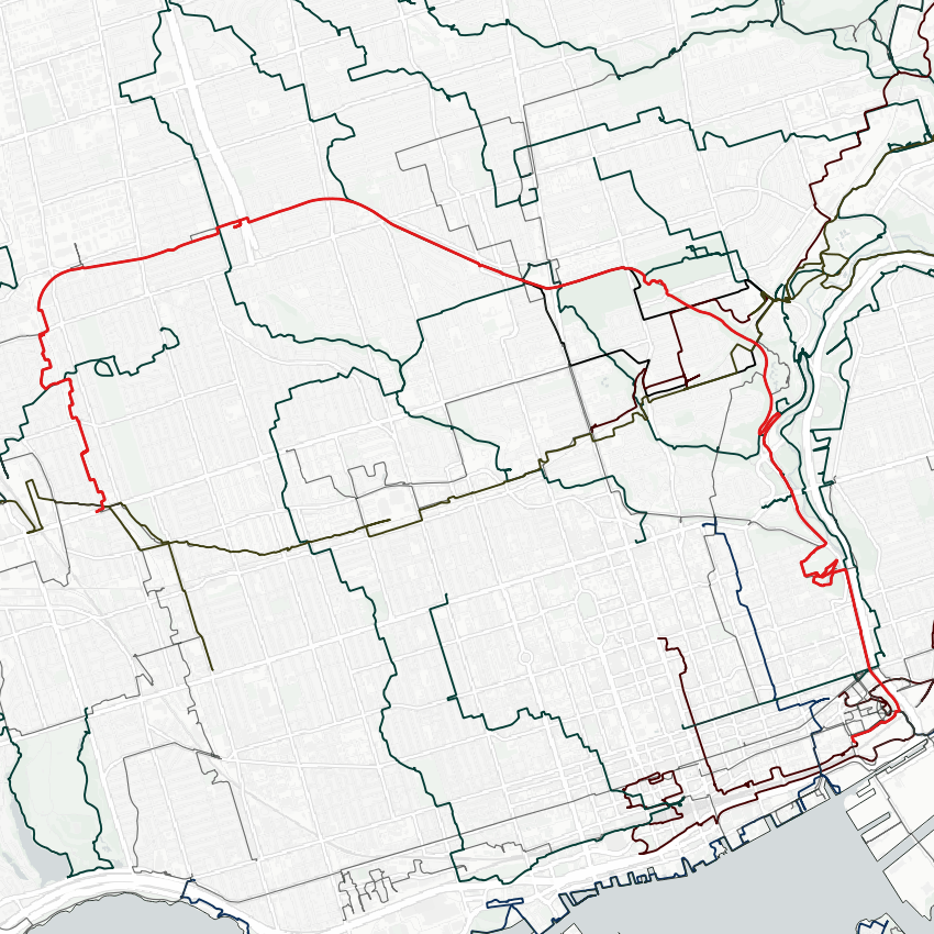 Following the rail line via the Bayview Extension Trail. The stupid speed limit debate here drowned out the fact that better trail infrastructure is needed to connect between the Brickworks, Lower Don Trail, Milkman’s Lane, Prince Edward Viaduct, and Rosedale Valley.