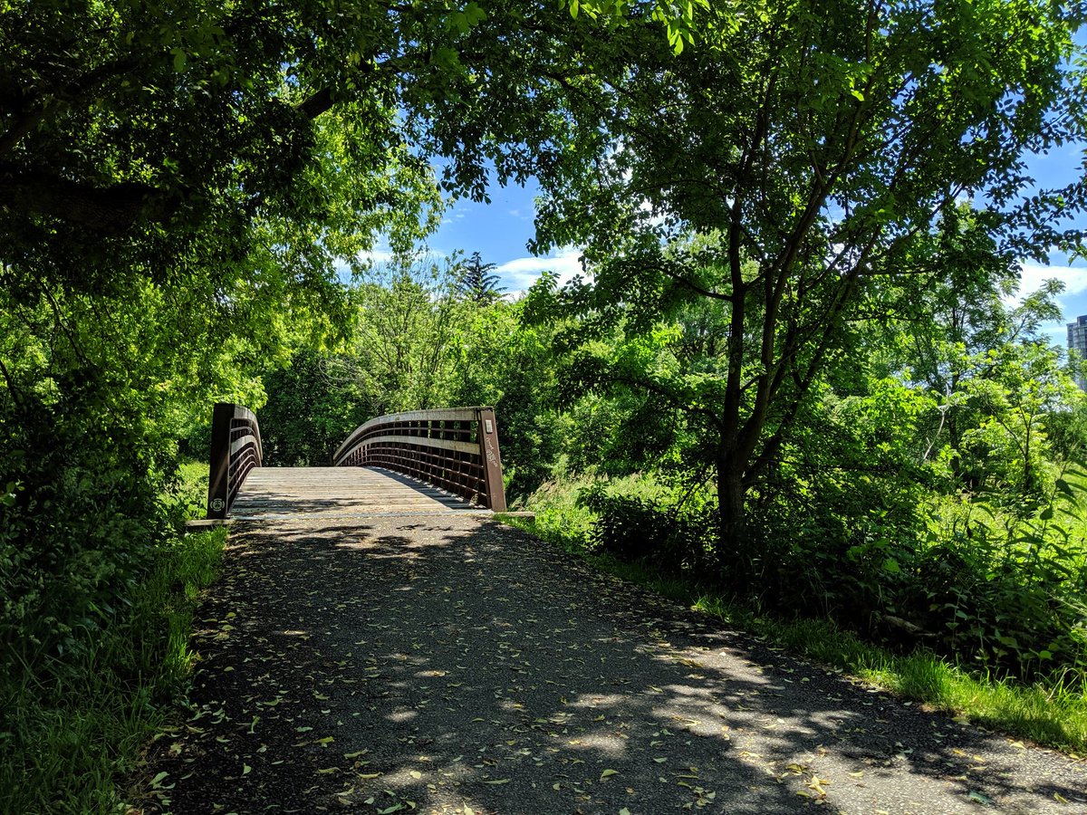 A high quality trail here. Grade-separated by bridges, shaded by lots of mature trees. We need more of these, and we need to plan them as 21st-century transportation corridors.