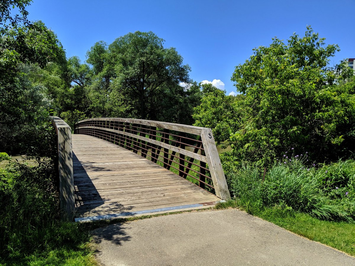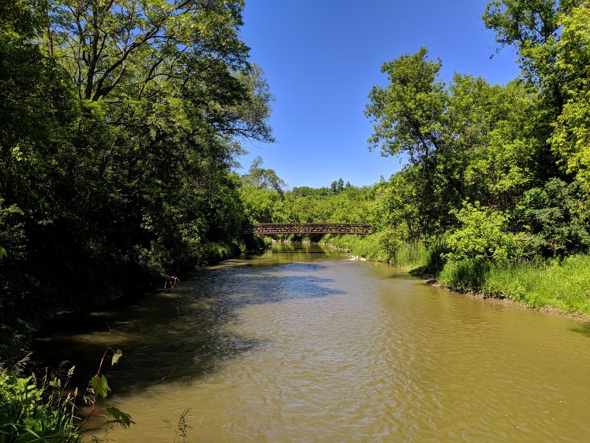 Confluence. I didn’t manage to get this shot the last time I walked the Humber. After that, we backtrack to cross the west branch and head north.