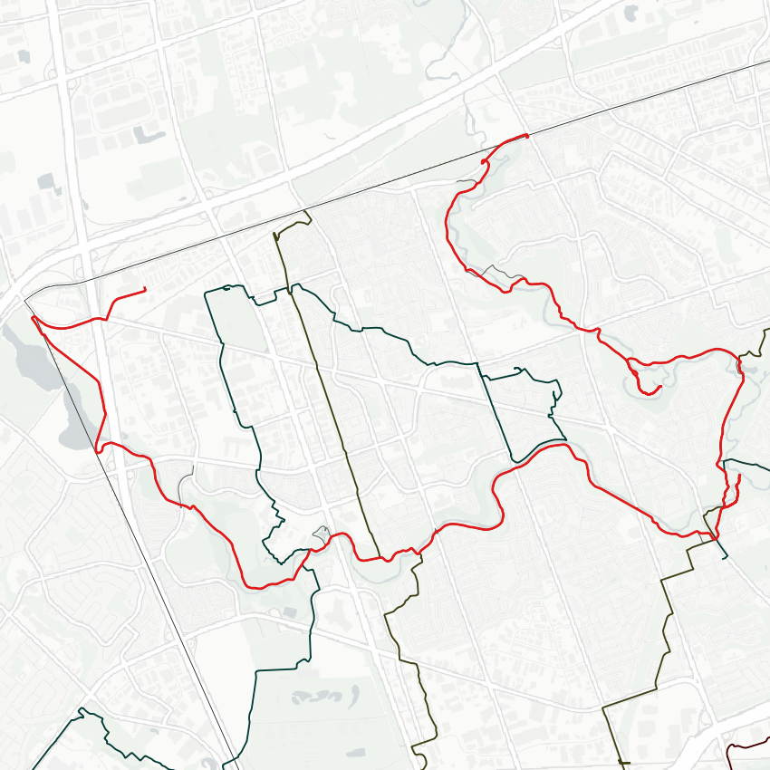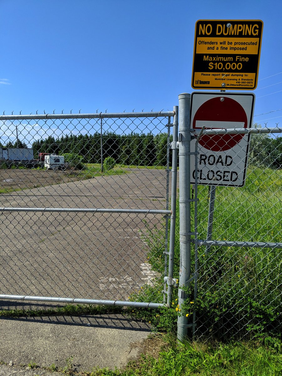 I gotta walk from where the Steeles West bus ends, and then I’m confronted by an unnecessary fence. Eventually I get around and onto Indian Line, which looks like it hasn’t been touched much since it was paved years ago.