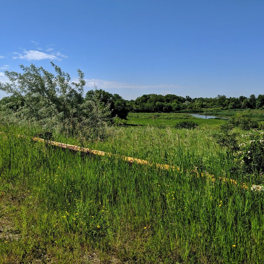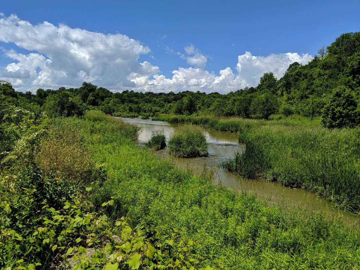 Past the dam and under the highway, into Toronto proper. Large swaths of meadow, wetland and riparian habitat here make it a lush area.