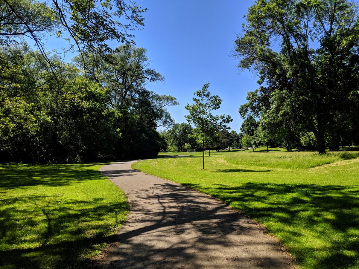 Past the Humber Arboretum, I lose my tree cover. And I can see the pollen raining down on me. Fortunately walking conditions improve east of Martin Grove again, as the shade returns.