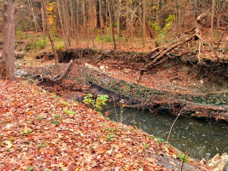 The creek is small and a bit urbanized with gabions lining the bed and the banks. But the vegetation cover is great.