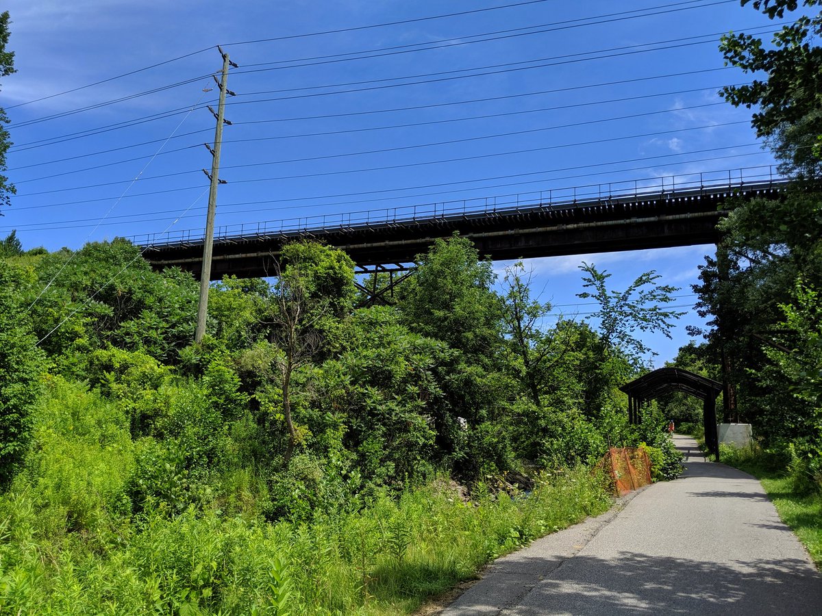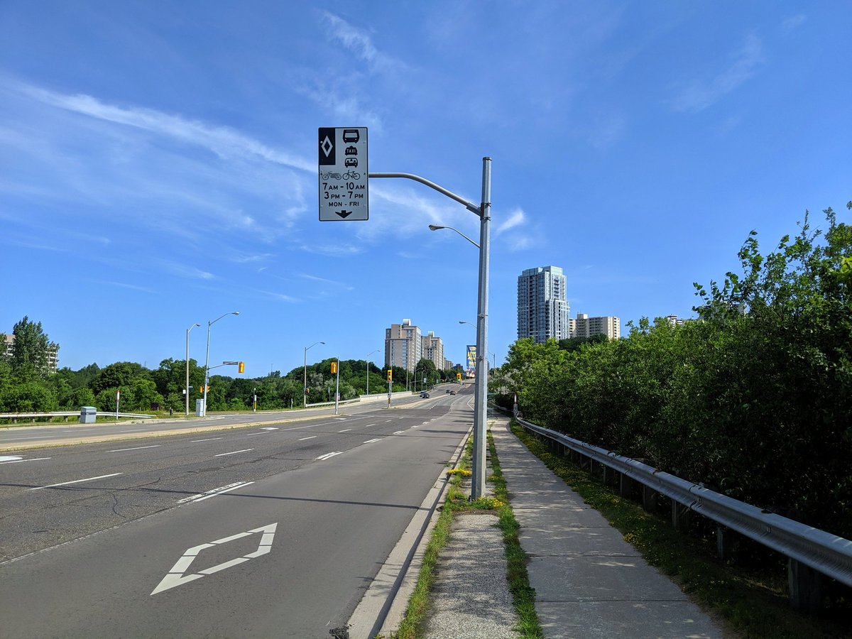 Further on to York Mills and Leslie, where they engineered this thing that can carry cars over the river, but not people under the cars.