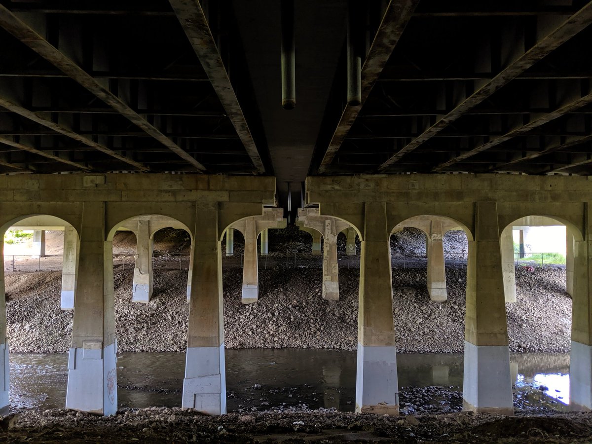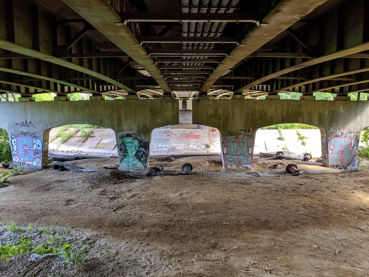 The only spoiler to this peace is noise from the expressway. This cathedral of an underpass must be where one prays to the automotive gods.