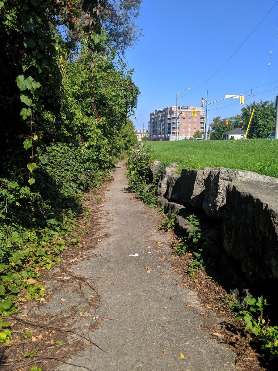 Past Dundas, there’s a formal city trail parallel to the creek. It’s got plenty of tree cover, and is a mix of soil concrete and boardwalk. This is done proper.