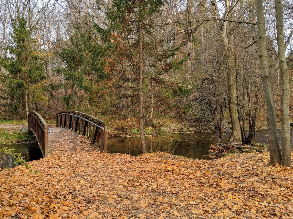 Through Homer Watson Park to the boulevard of the same name. There’s a new pedestrian bridge here, with underpasses to continue along the creek.