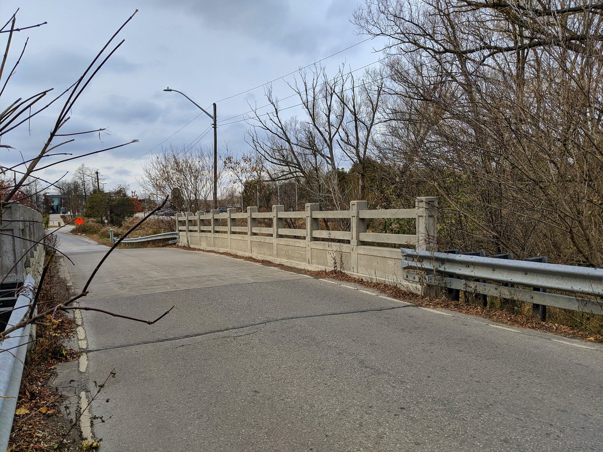 Back under Homer Watson again, and to more heritage. Bridge is circa 1930. The creek continues through a heritage village that’s part of the regional museum, but it is closed, forcing a detour.