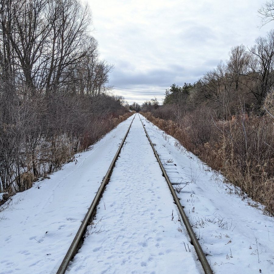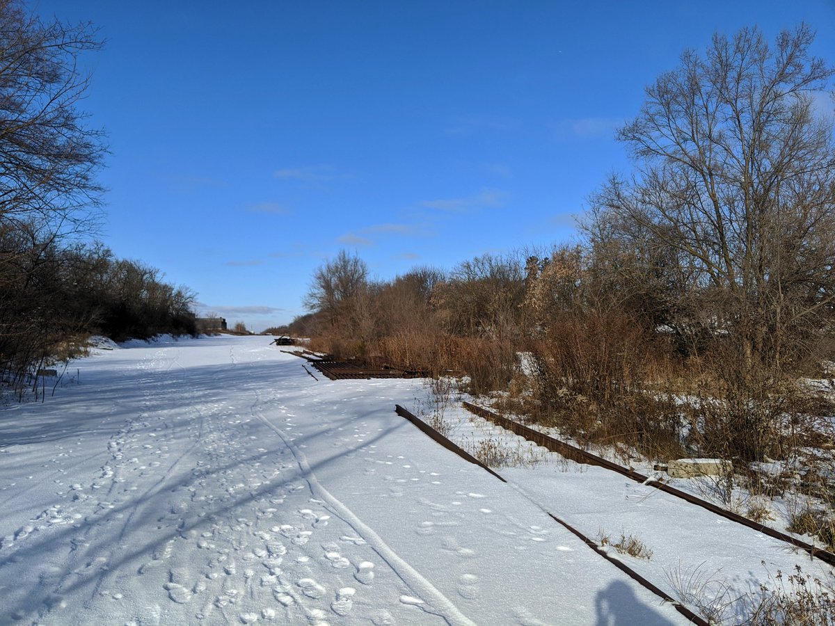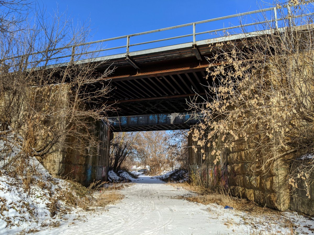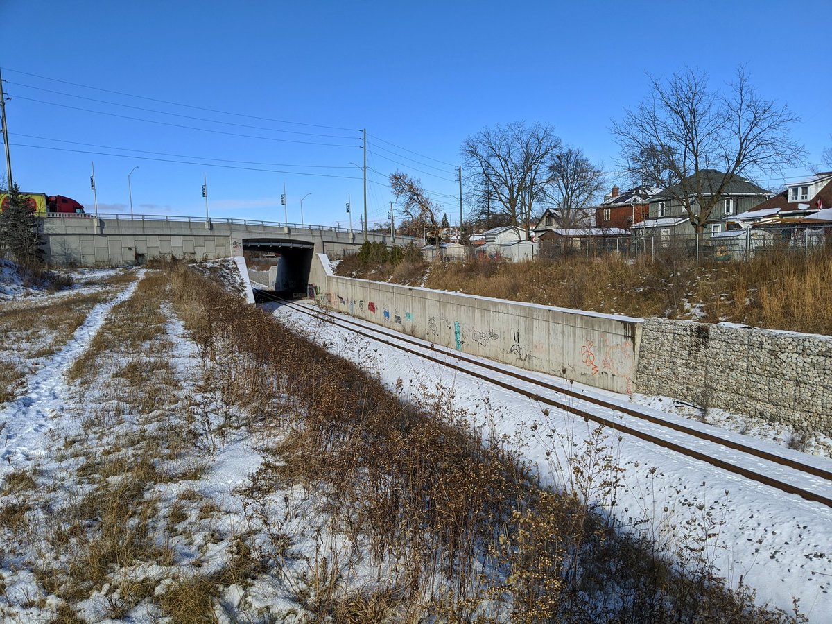 North of Dundas, the right-of-way got bought up and is being used privately. Fortunately you can still get through the Canadian Pacific underpass. From here it opens up again into a rail yard that’s had all its tracks torn up. CP still uses the line north into KW though.
