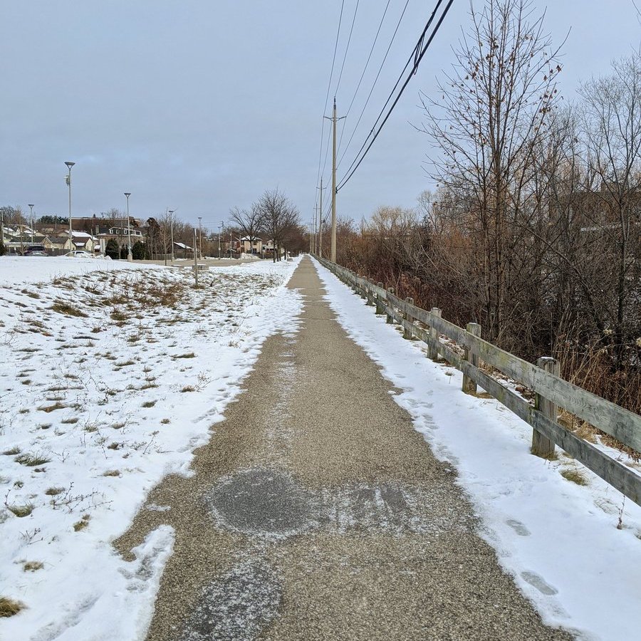 After diverting via Eagle and Speedsville, we come to the abandoned train tracks that the LRT will follow. They are overgrown until Russ, so the Speed River Trail suffices. Then back on track until Eagle again.