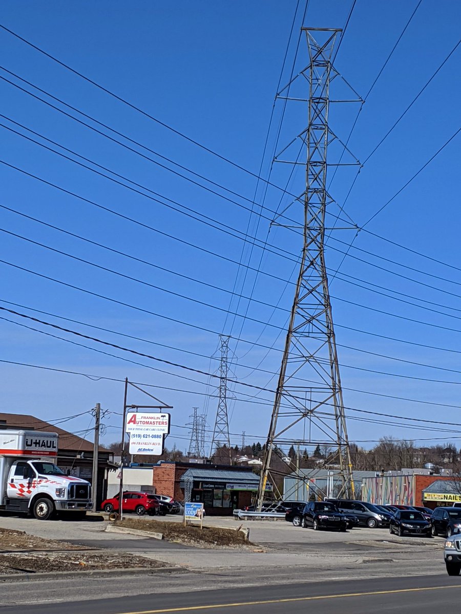 Good afternoon. Great day to take a walk and shake off some pandemic cabin fever. I’ll be following the Cambridge hydro corridor, we’ll start where it meets the Galt Transformer Station at Franklin. Let’s go.