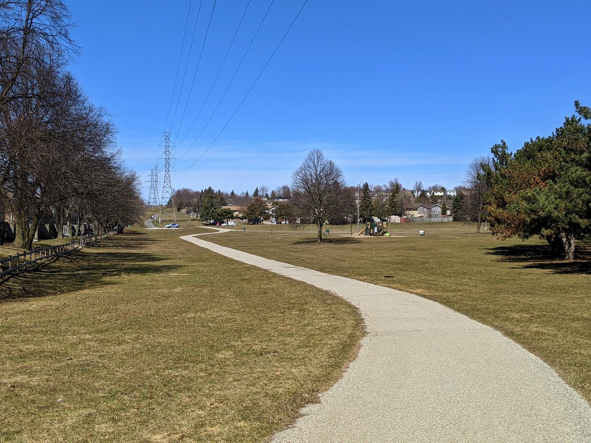 This corridor actually enters Cambridge east of Little’s Corners. But up until Avenue Road, it’s private property and a closed landfill. Then a path takes you to some great open space (although the playgrounds are closed). “Northview Heights Trail”; yep there’s a climb.