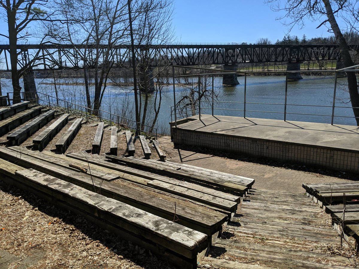 The old Galt Railway Station, now a house for maintenance workers it seems. Also leads to Galt Collegiate, which has a performance area in the shadow of the railway.