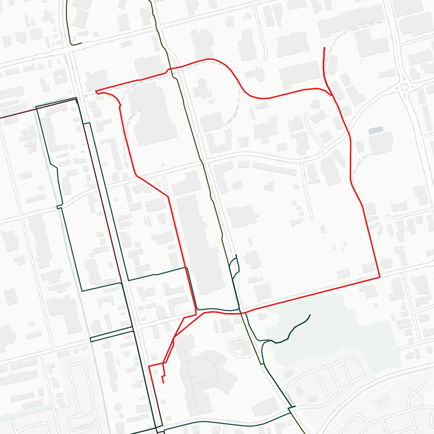 This third leg (I skipped the second) east of Hespeler climbs to a peak between Sheldon and Bishop, providing a nice vista of the city, before sloping back down to a derail. That’s the end of the line for today.