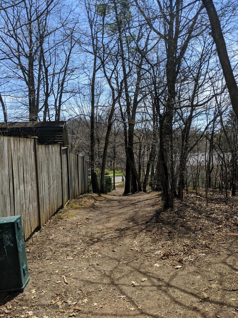 This footpath rises and falls, wedged between backyards. This is no ravine. Going to loop back and call it a day.