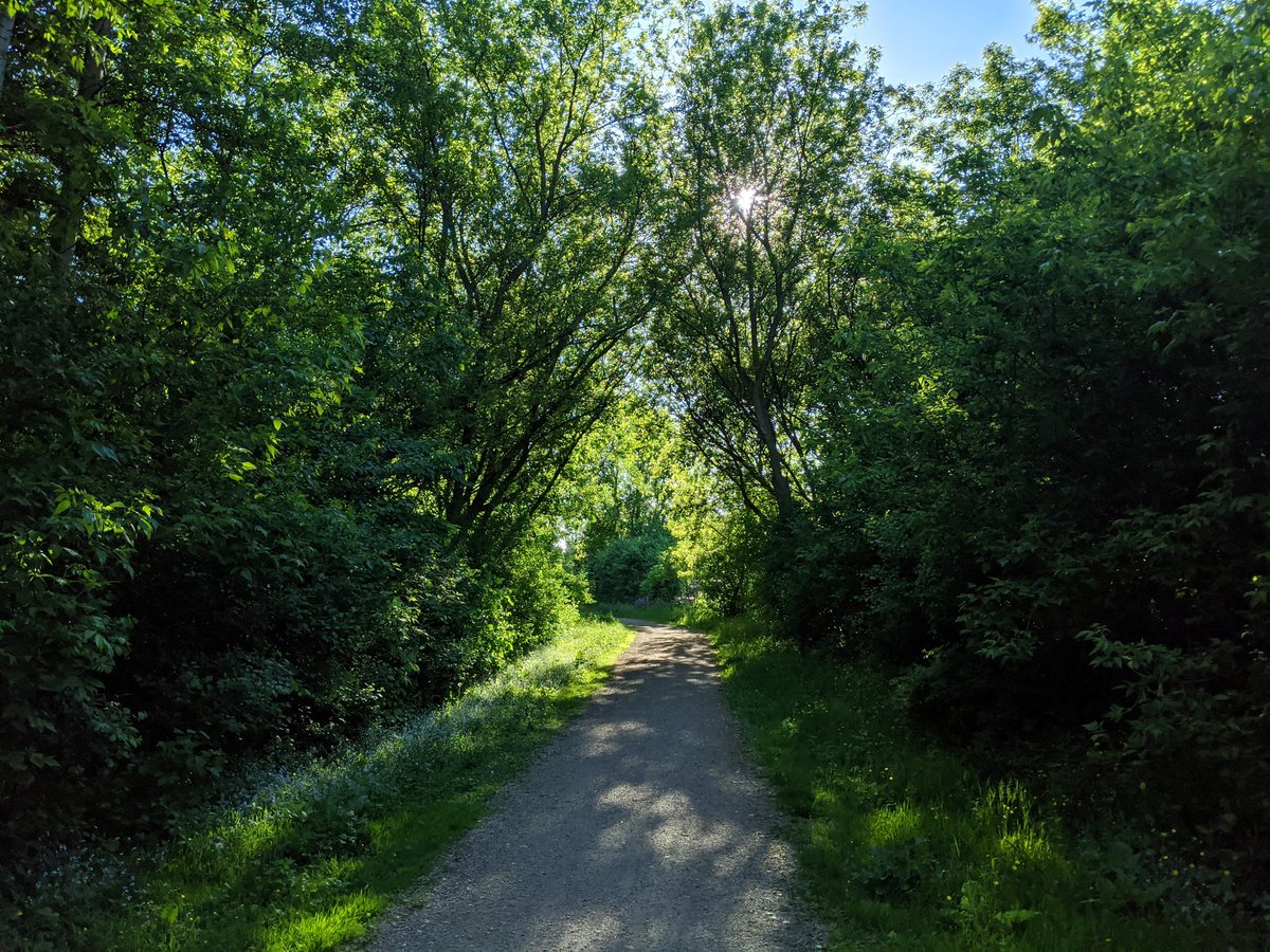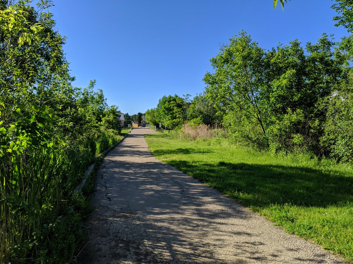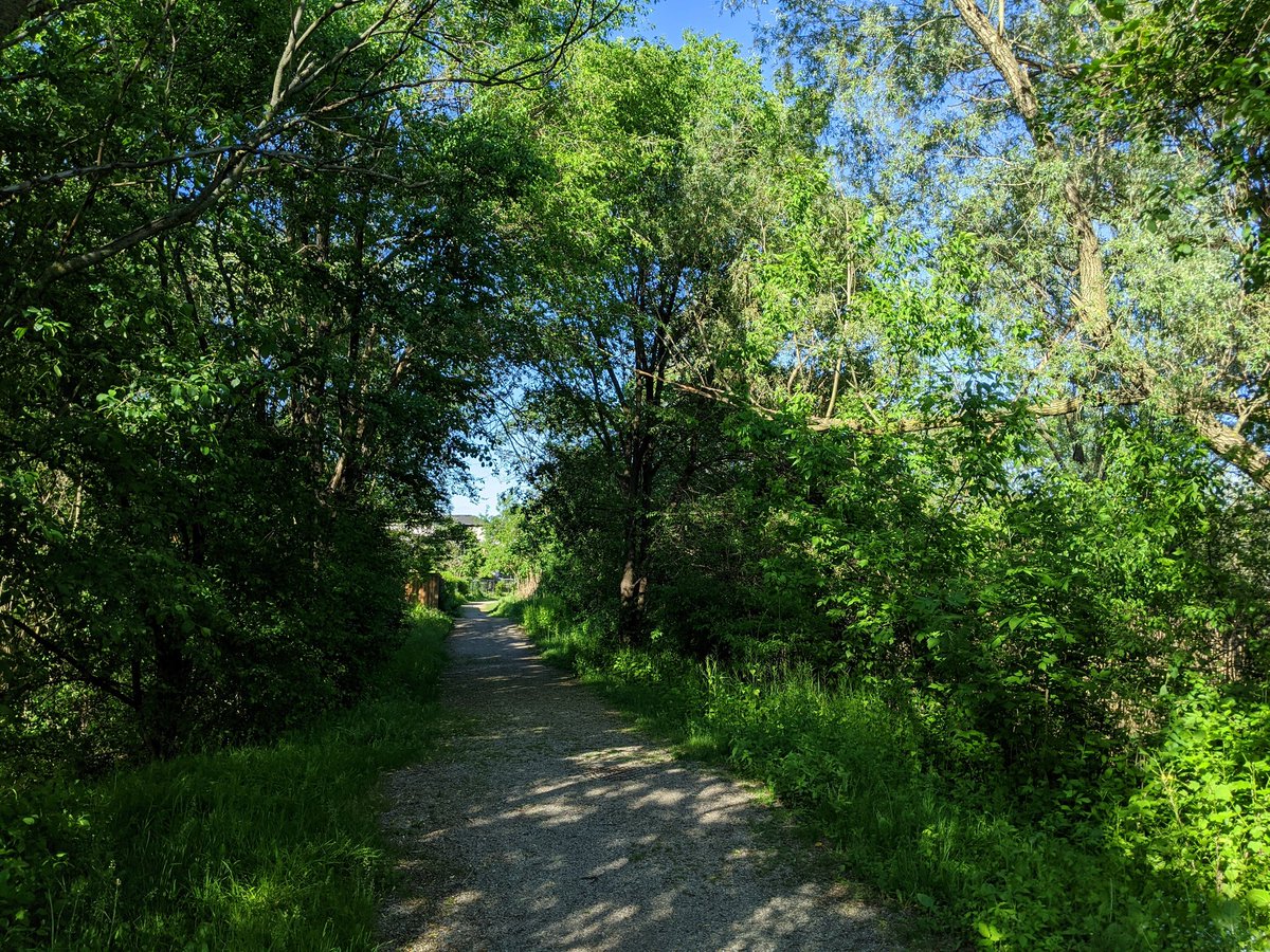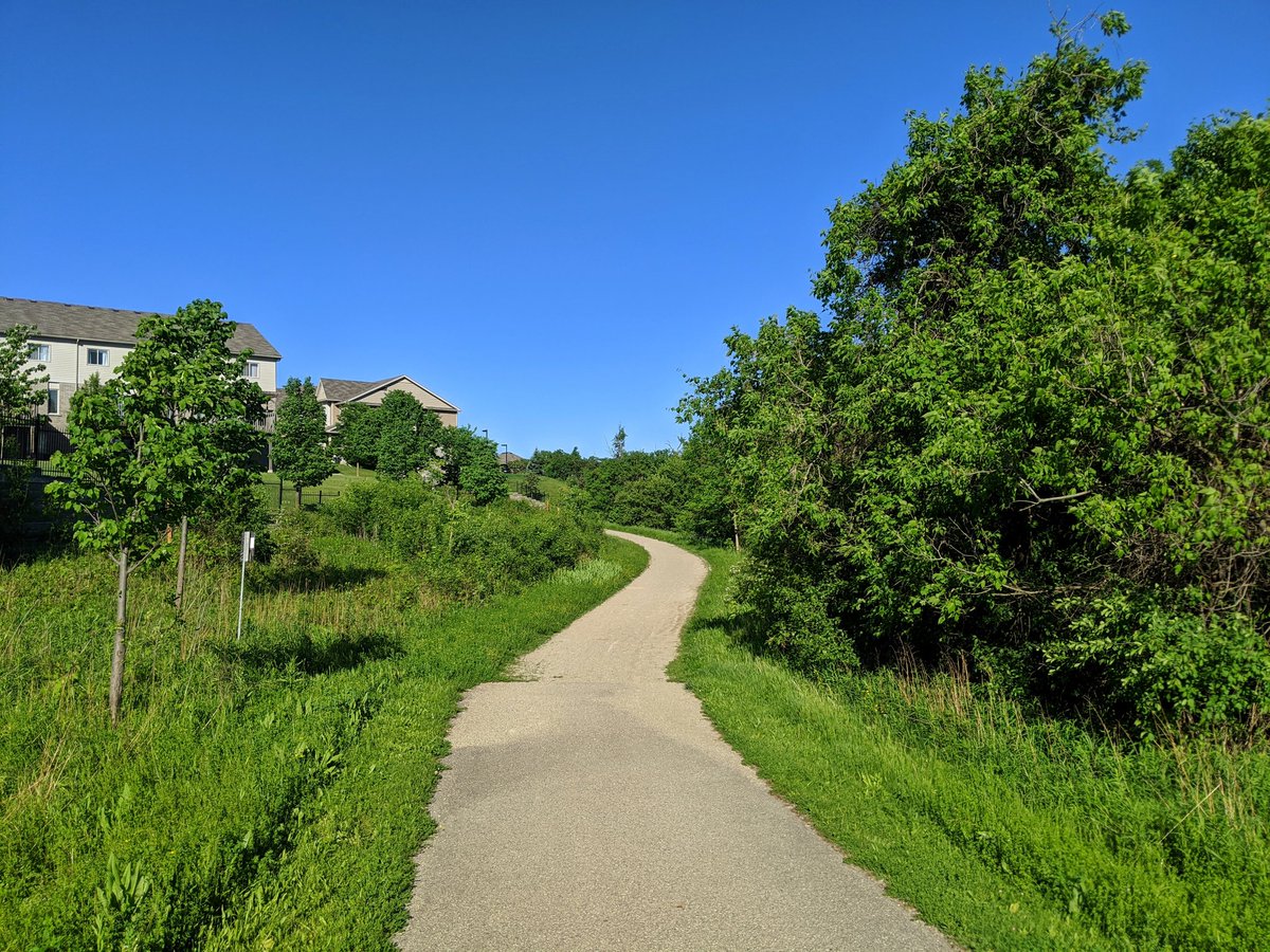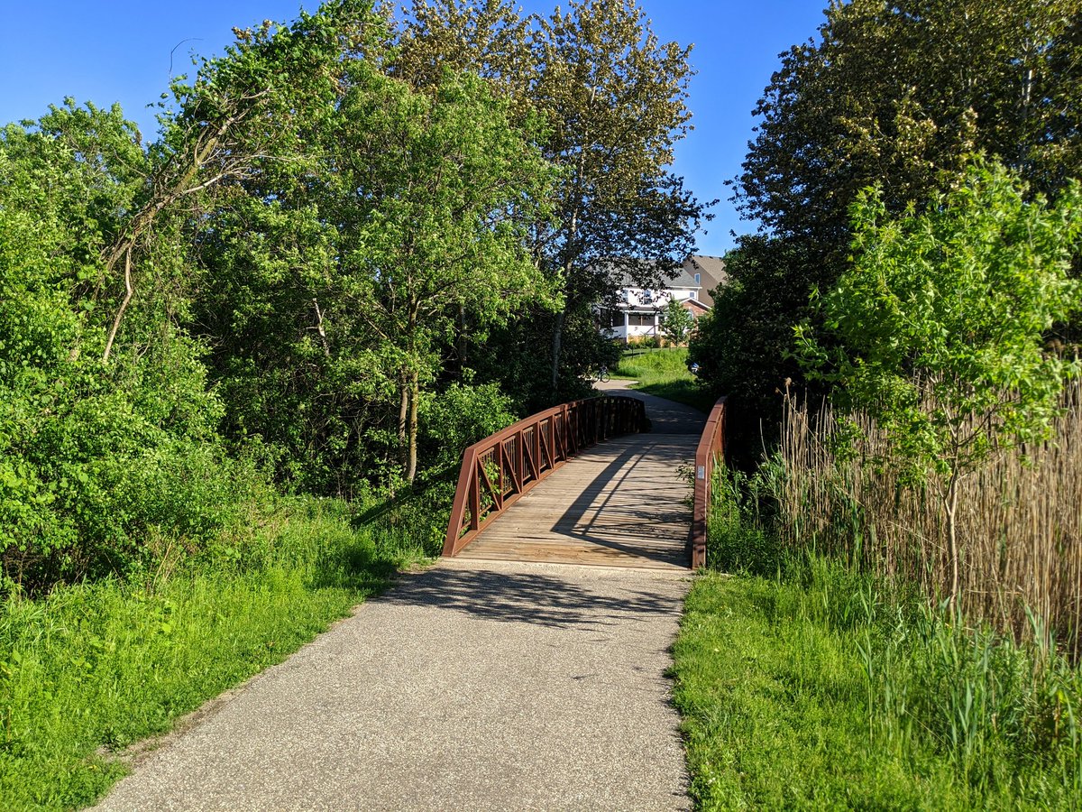 Now things get difficult. No direct trail, diverted to the street and around swampy stormwater management ponds. It’s more about local neighbourhood connections than providing a regional thoroughfare near the creek.