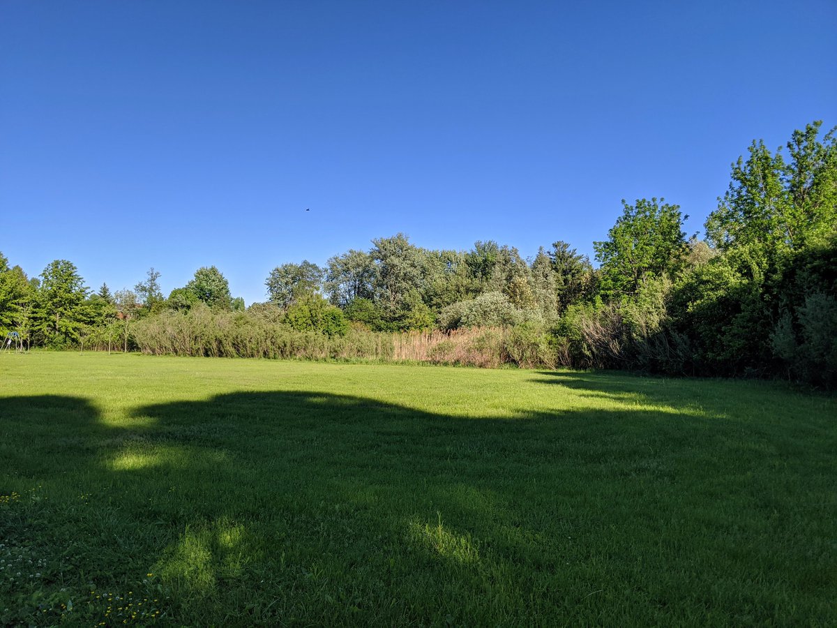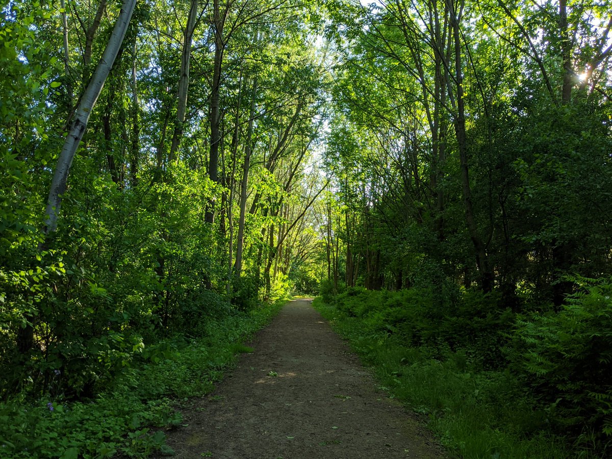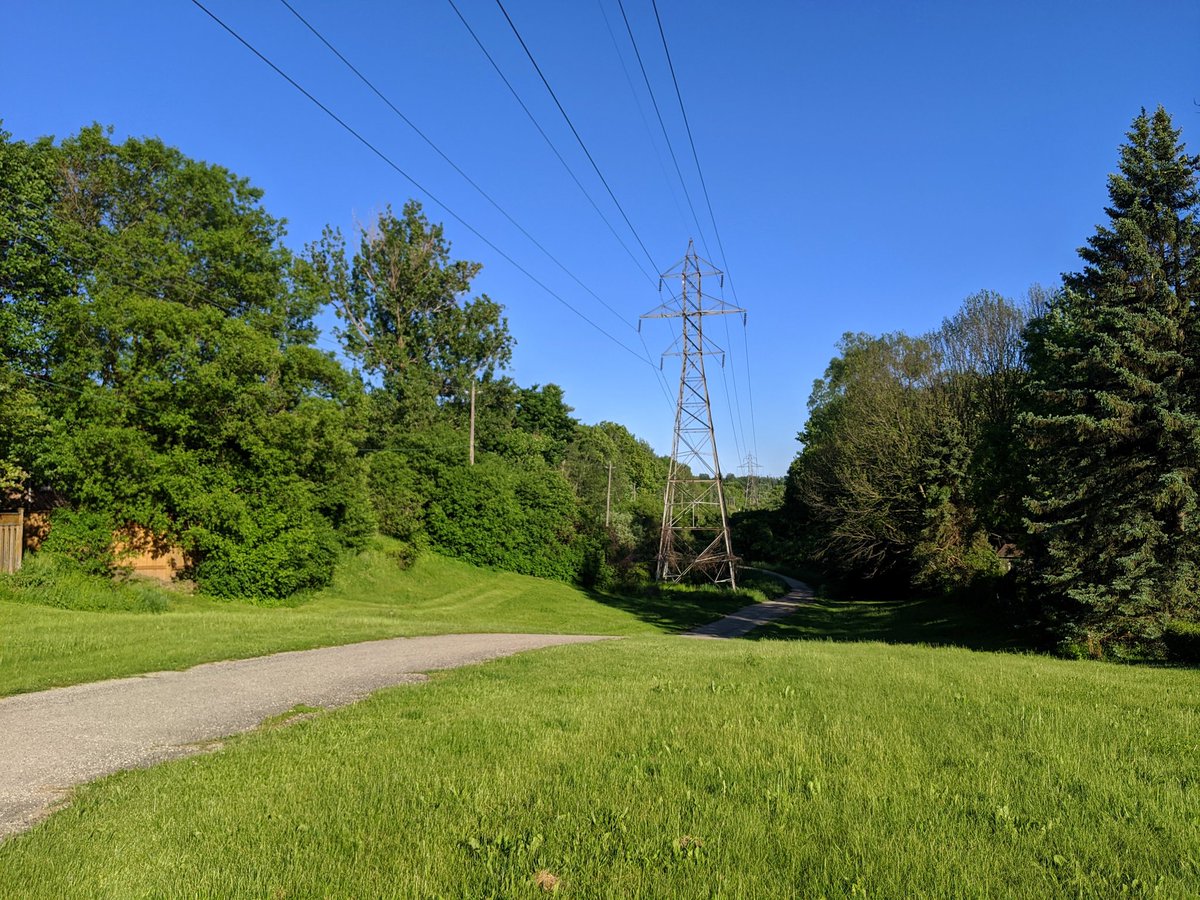 Across a little bridge and to the street. No trail west from Old Chicopee Drive, gotta go around and use the hydro corridor to get back. Takes you back into the woods.