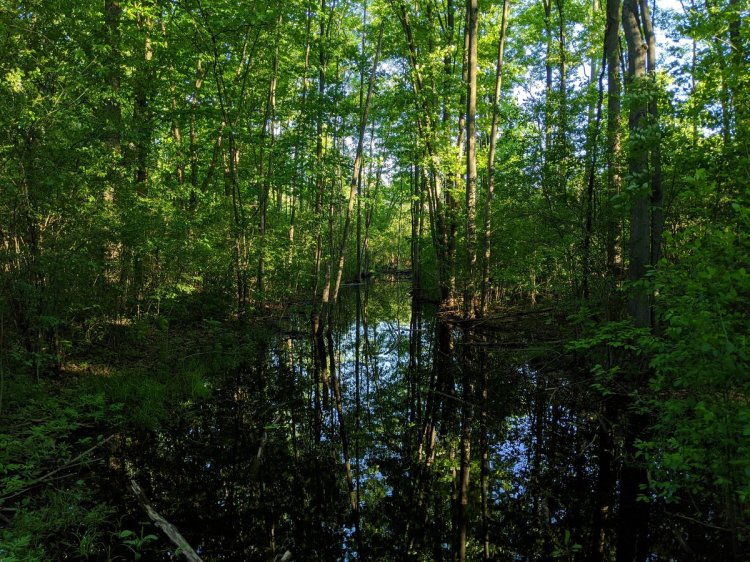 Headwaters of the other branch (which hopefully, if it has a name, a road sign will tell me). The Laurentian Wetlands span a huge contiguous area. While they flank both sides of David Bergey Drive, the part on the east side is certainly the crown jewel.