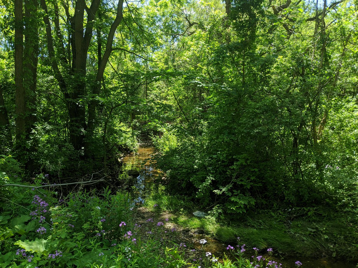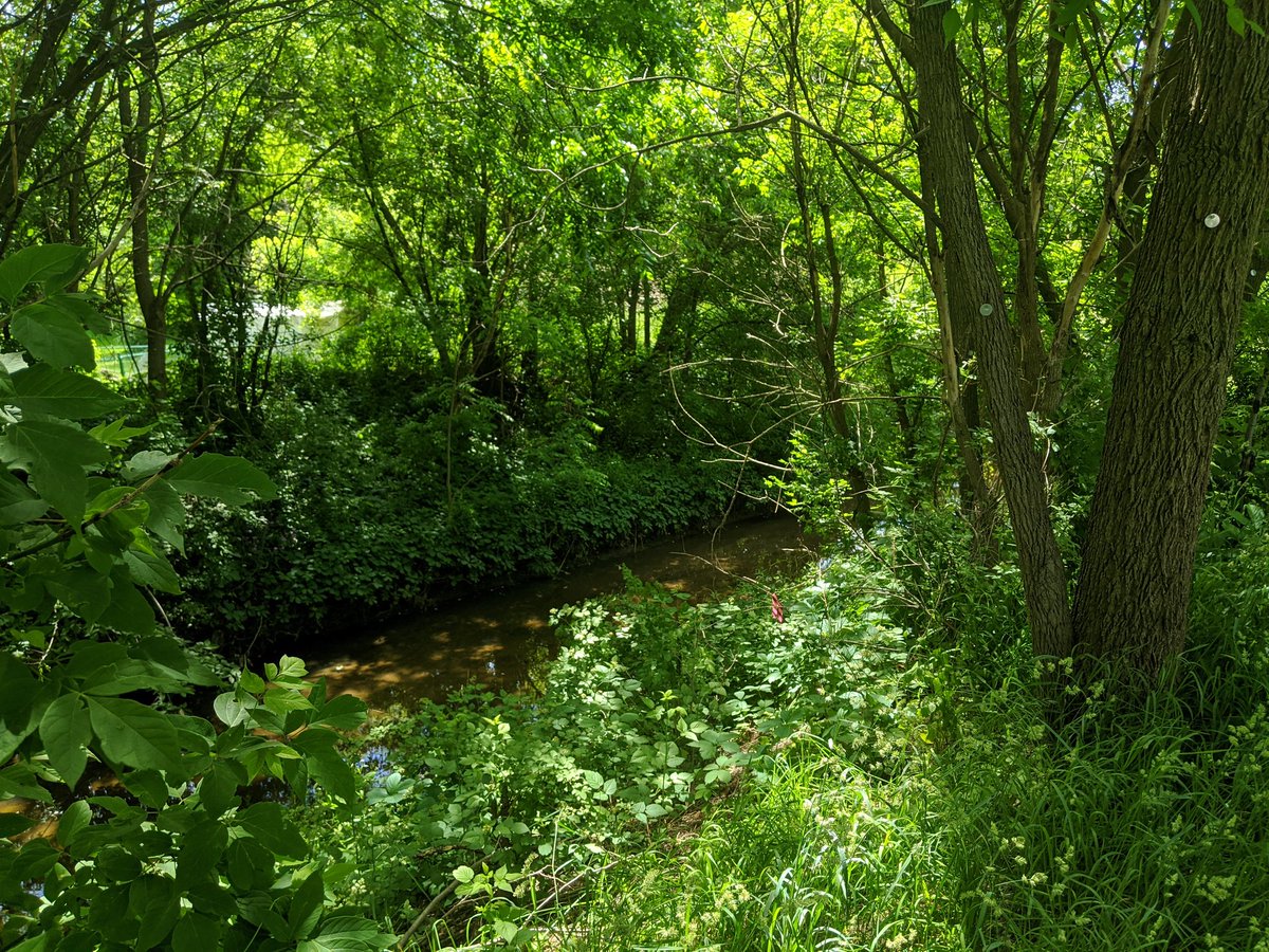 Meinzinger Park. Finally, a formal trail gets established. Thick tall wood on the banks.
