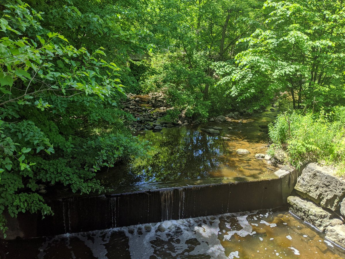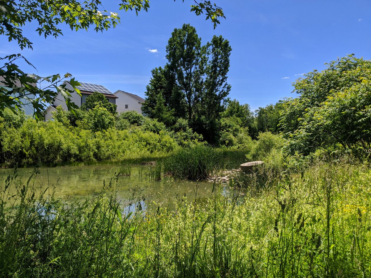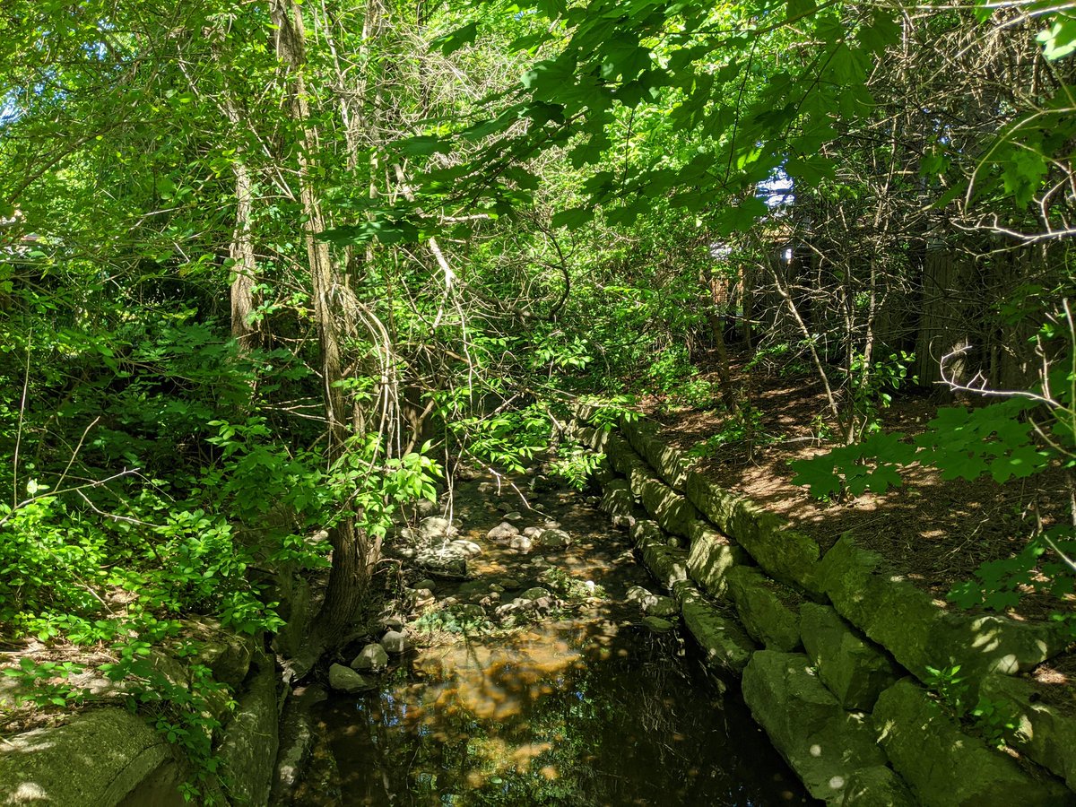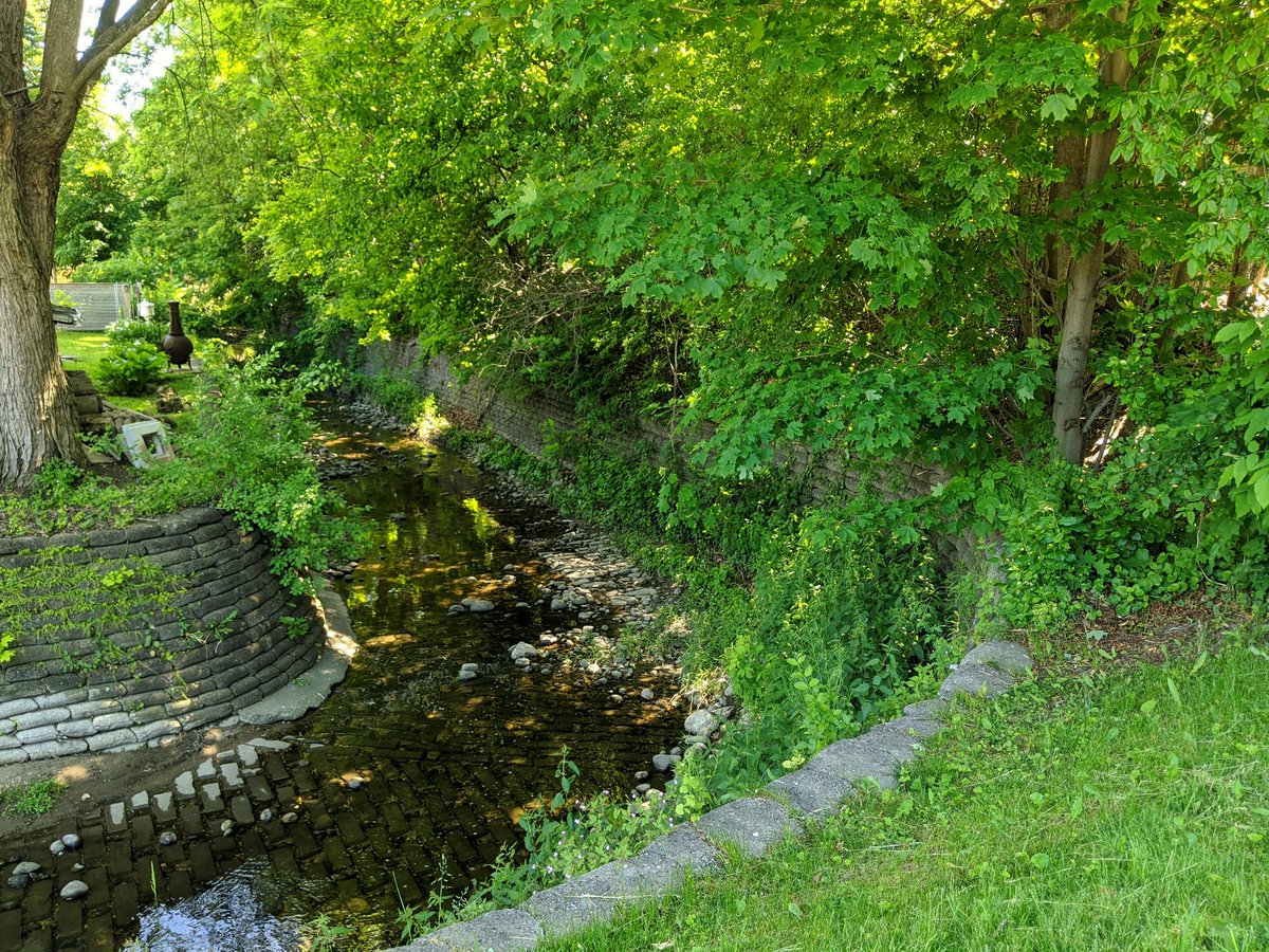 The creek winds behind some more houses before making a 90° bend, and coming back into the public realm. It’s at this point that Voisin and Borden come together to make Shoemaker Creek again.