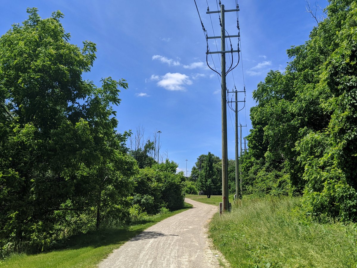 The main branch goes through a groundwater well field protected by Concordia Park, until it dives beneath the Conestoga Parkway. Fortunately there’s a pretty easy way around.