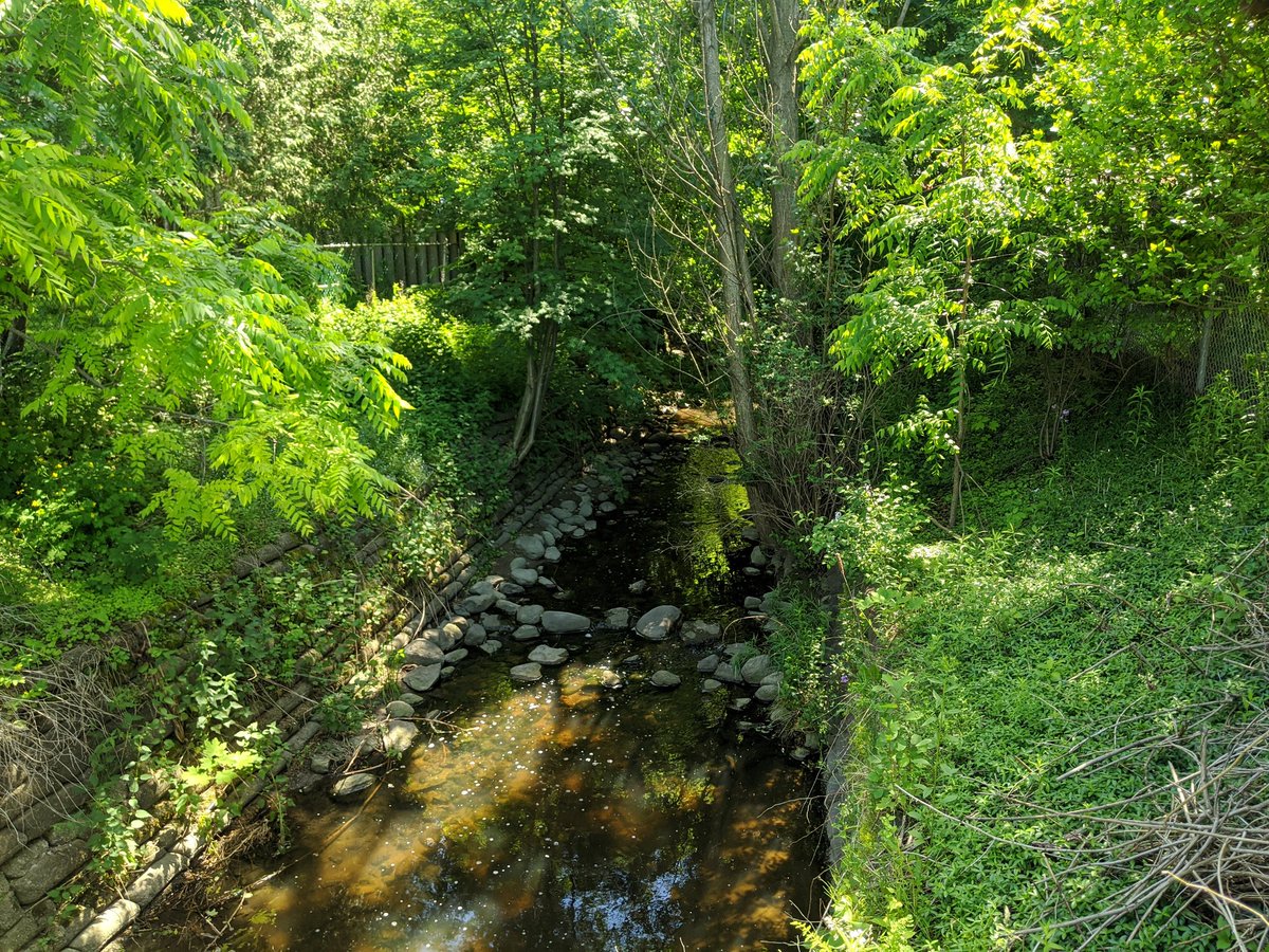 So sometimes I gotta work with bad or incomplete information. Thanks to a road sign, I learned this is called Borden Creek, and while it is the larger tributary of Shoemaker, it is not called that south of Greenbrook Drive. Nonetheless, we continue south.