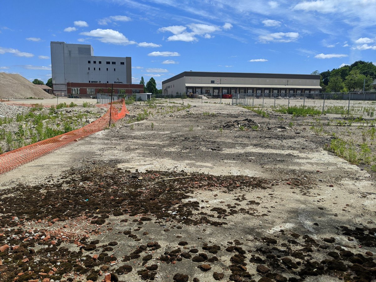 The confluence is in an urbanized reach of Schneider Creek. And Shoemaker bends around a box trench. If it had been dry for many days before, I might have been able to go further, but it’s a little too deep leading to Bedford. Gotta backtrack.