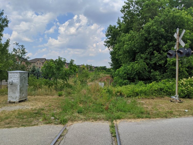After crossing a hydro corridor, the creek flanks some fields of corn. It’s set down in a deeper valley here, and the difference is significant. 5° cooler, easily.