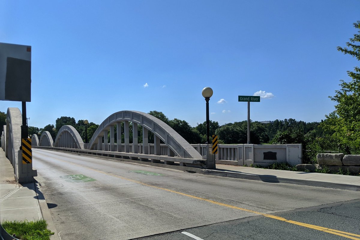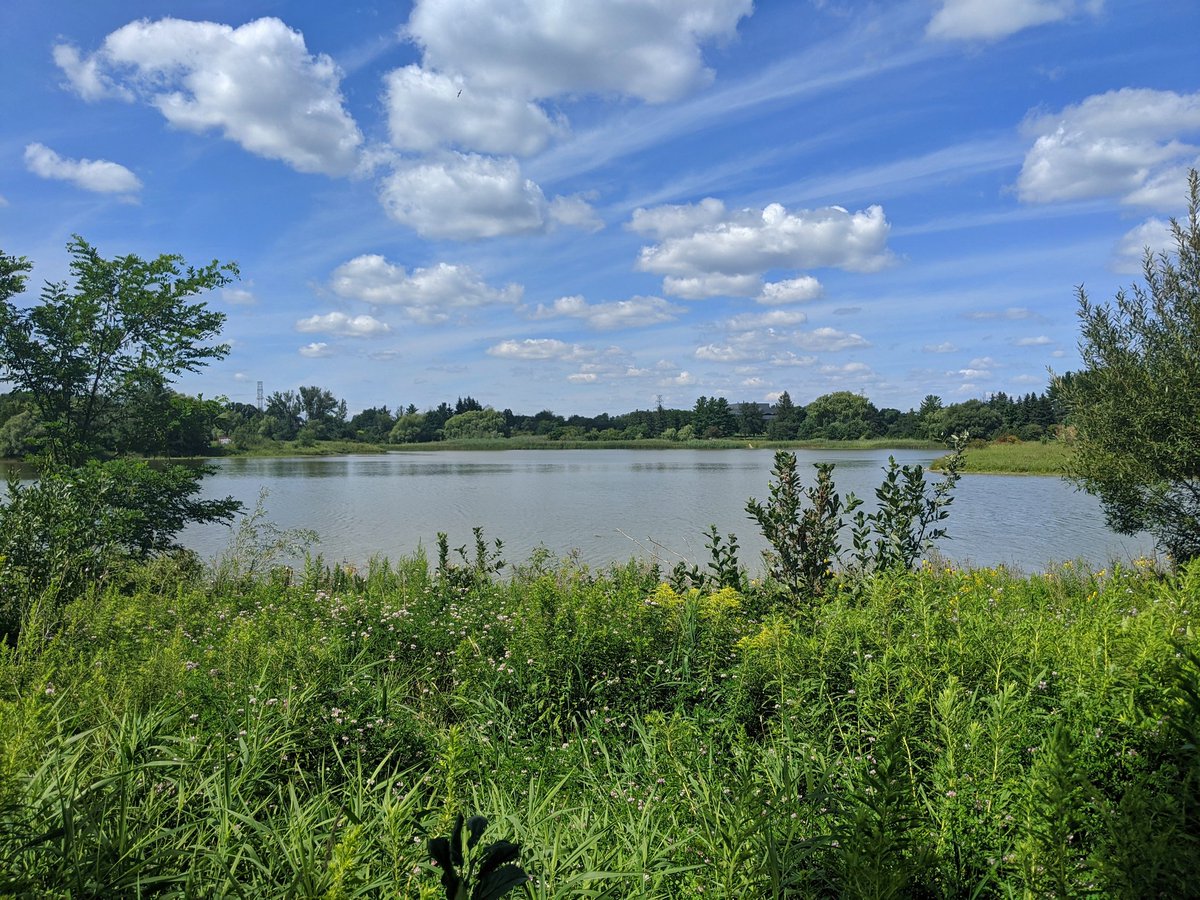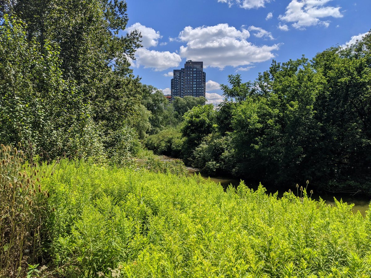 I’m back close to the creek. It meanders quite a bit here, and I’m sticking to the designated clear trails. I got shorts on and there’s lots of warnings about giant hogweed. The creek ducks under the Conestoga Parkway, I have to use the University Ave overpass to get back.