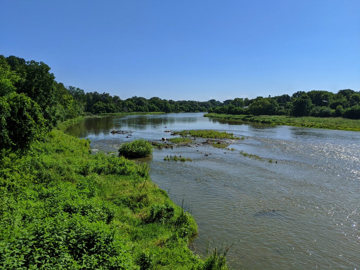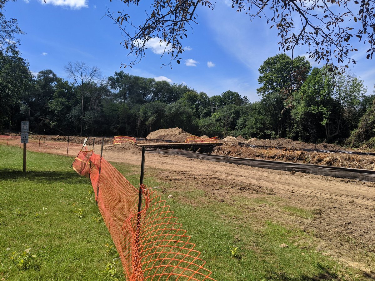 After going upstream through Waterloo Park a bit, I get pushed away from the creek by fencing. This reach is undergoing rehabilitation work, and scrubbing / staging began this past week. Looks ugly, but it will be worth it for the creek’s health in the long run.