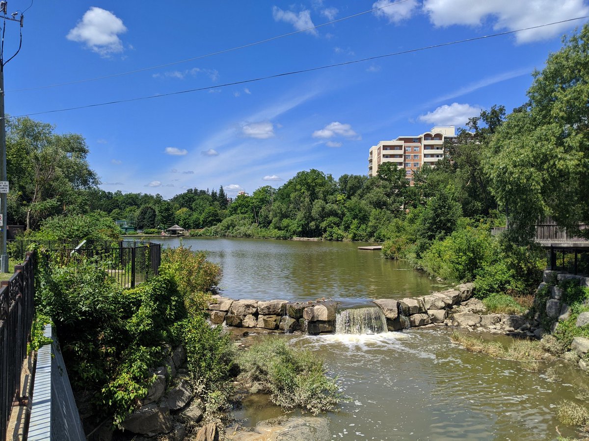 Laurel bumps up against Westmount. Now officially on the University of Waterloo campus. There’s two small weirs along the creek, creating Laurel and Strauss Lakes.