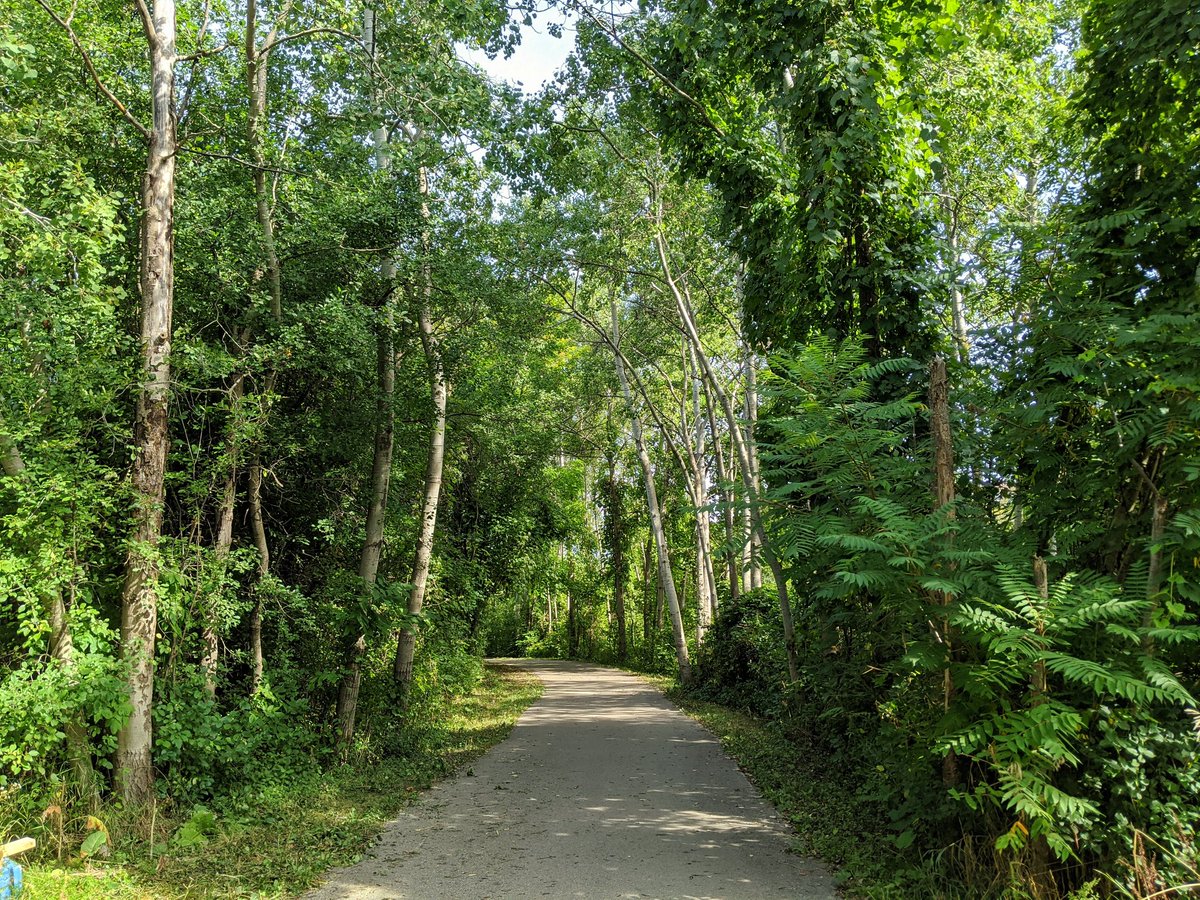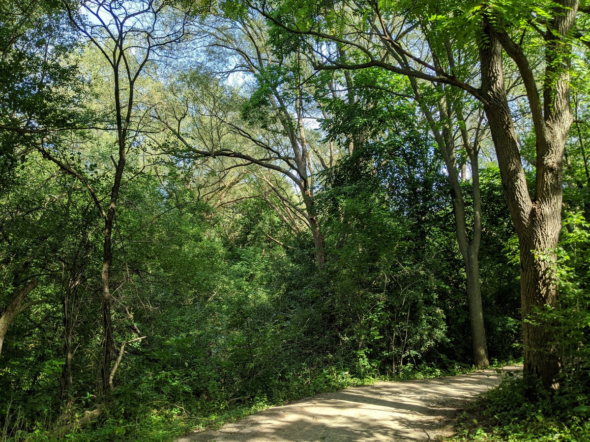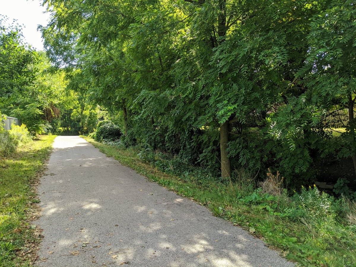 Montgomery Creek reappears on the other side. The trail flanks the expressway again for some time until going northeast. Had to detour around some of this due to open excavation, but how much they closed the trail is ridiculous.