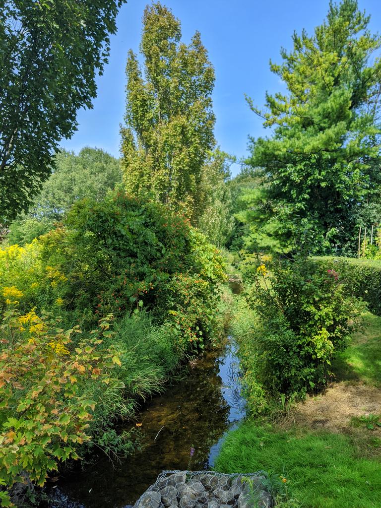Tall trees. Only a trickle of water. Meanders through some residential areas before passing under Homer Watson, and opening up into a wetland.
