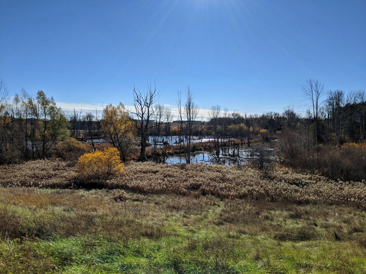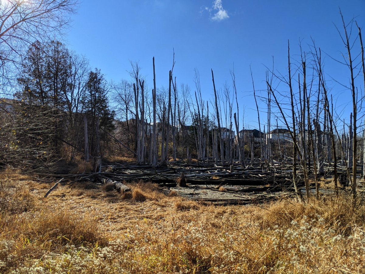 South of Brayshaw Drive is the third and largest pocket. However, the northern trail doesn’t offer a view. It’s wedged in some woods between houses and a berm containing the waters in the swamp.