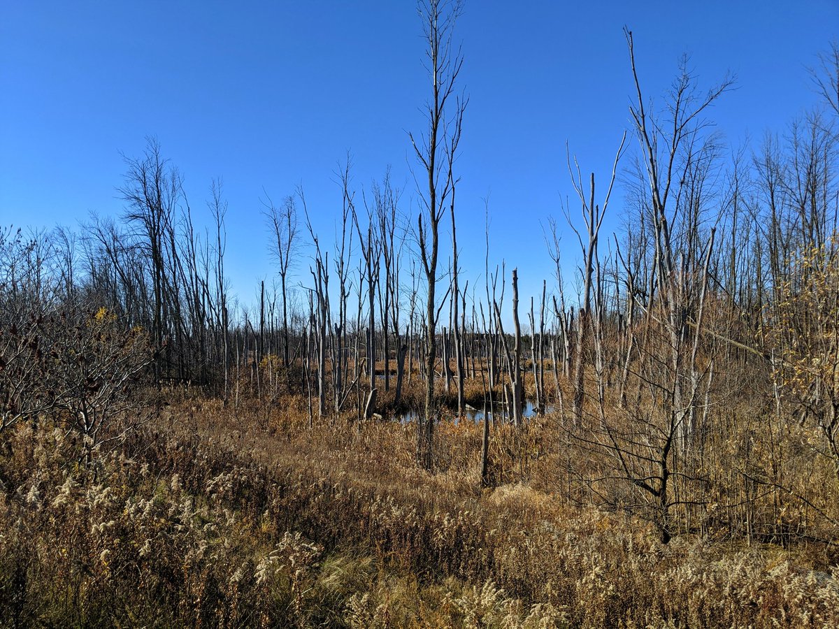 The second pocket is south of Can-Amera Parkway, and unlike the pocket to the north, you can take a trail and walk beside it. Pretty cool to see all the dead trees, it’d be really neat to catch it in the growing season when the top of the water is algae green.