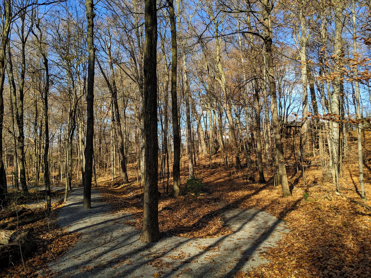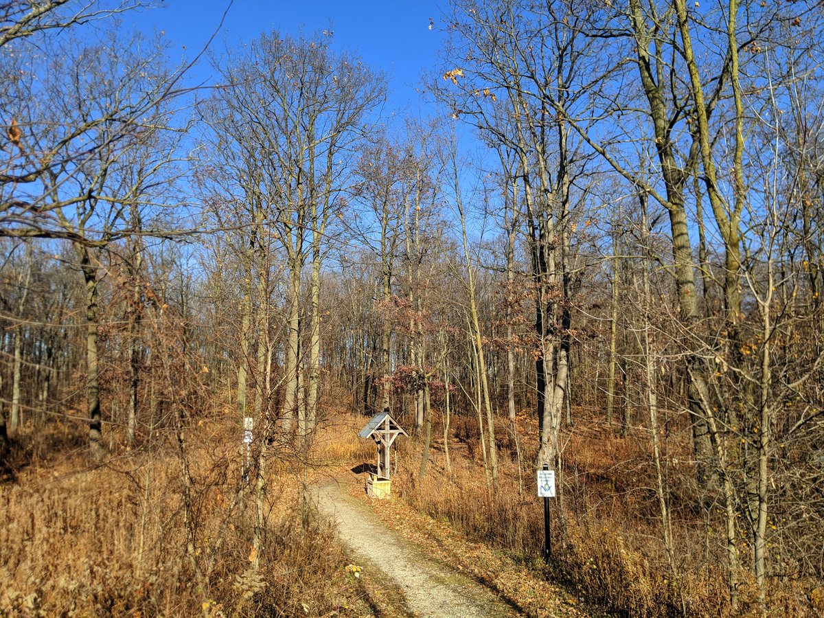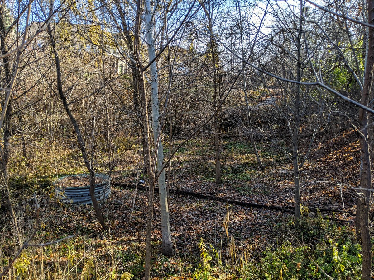 Out back of Bechtel Park is a woodlot that leads into one of the small valley legs again. There is a strange stonedust trail that must double as a berm.