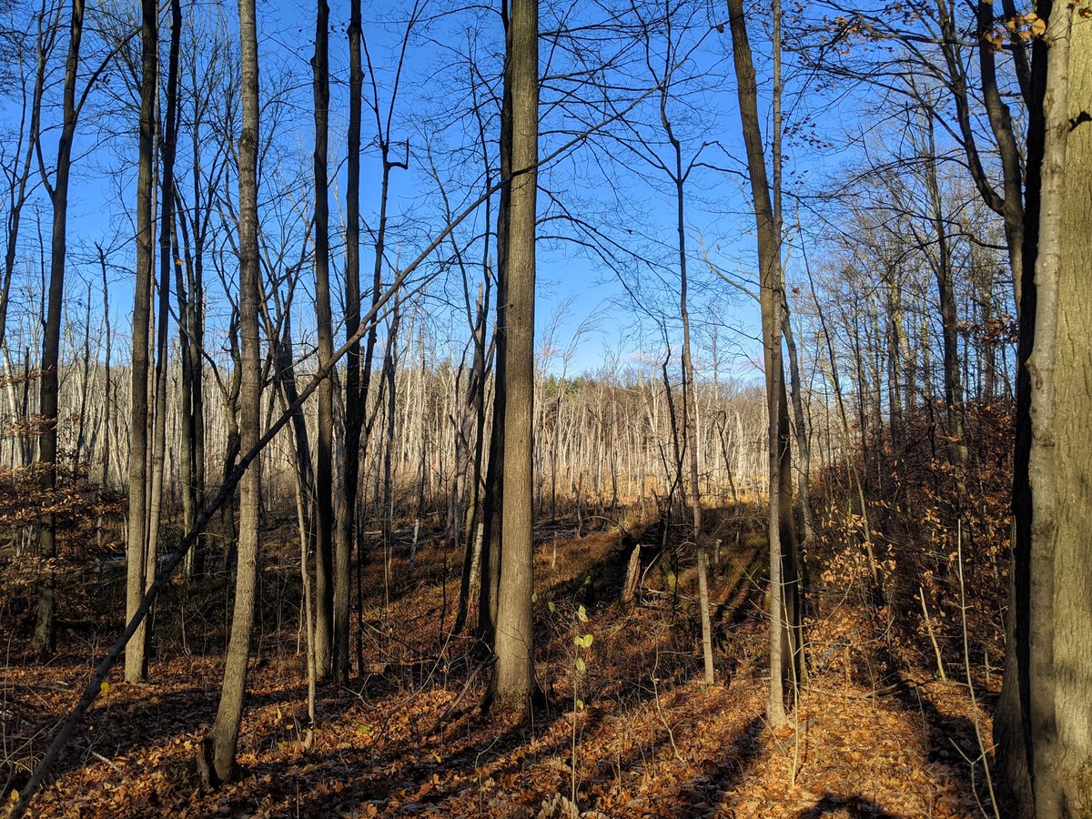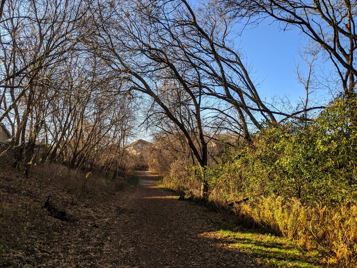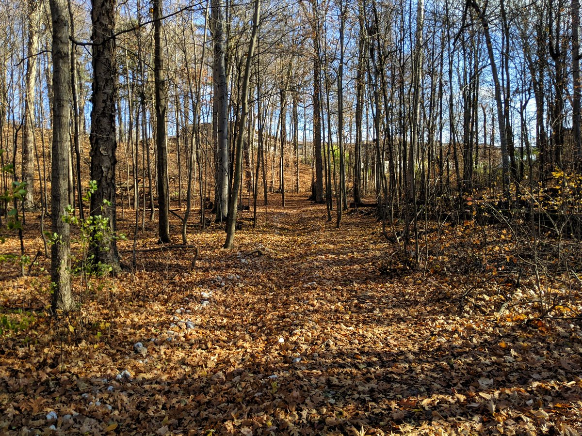 Out back of Bechtel Park is a woodlot that leads into one of the small valley legs again. There is a strange stonedust trail that must double as a berm.