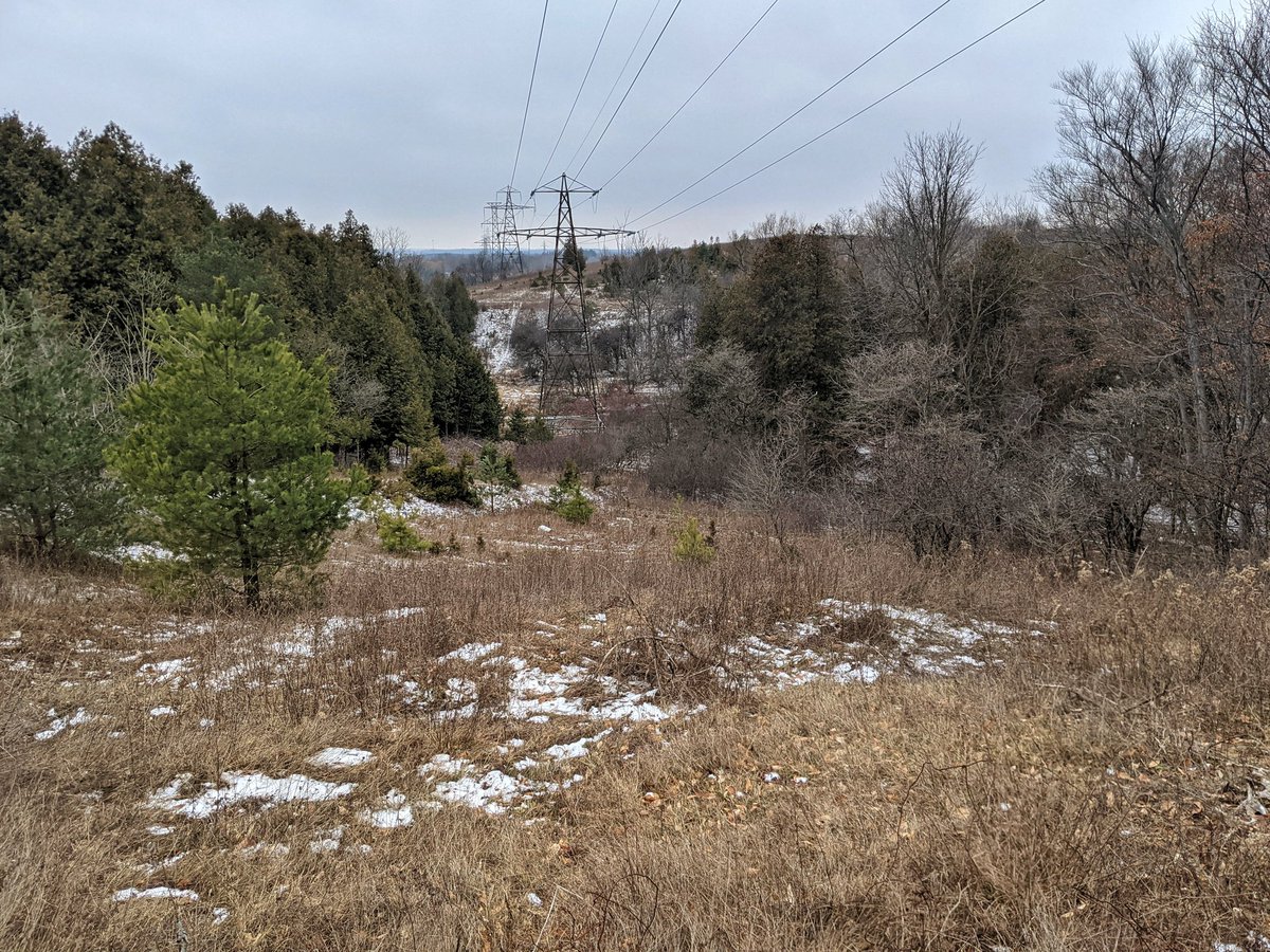 Brief glimpse of the rest of this corridor before it heads over the 8 to a transformer station south of Fairway. Then we meet the third and final hydro corridor, coming from the aforementioned transformer station, back over and to the east of the 8.