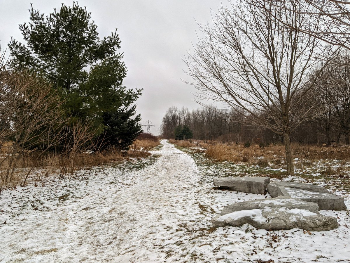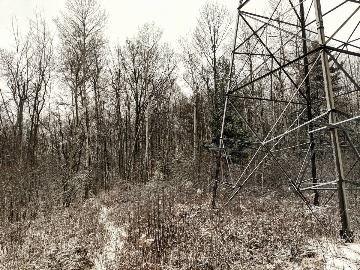 This first corridor comes from Guelph, paralleling Highway 124. When it crosses into Hespeler, there’s a good stonedust trail beside it that goes into the woods. I strayed far enough from the hydro lines to wonder if I was going the right way.