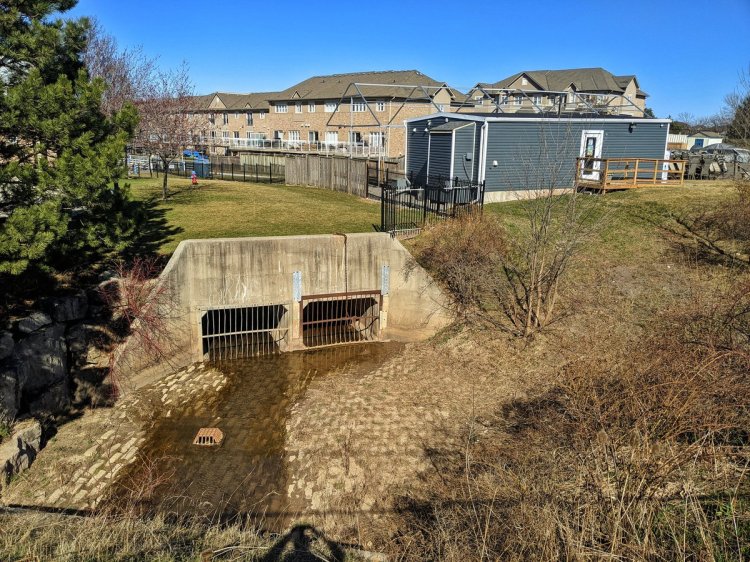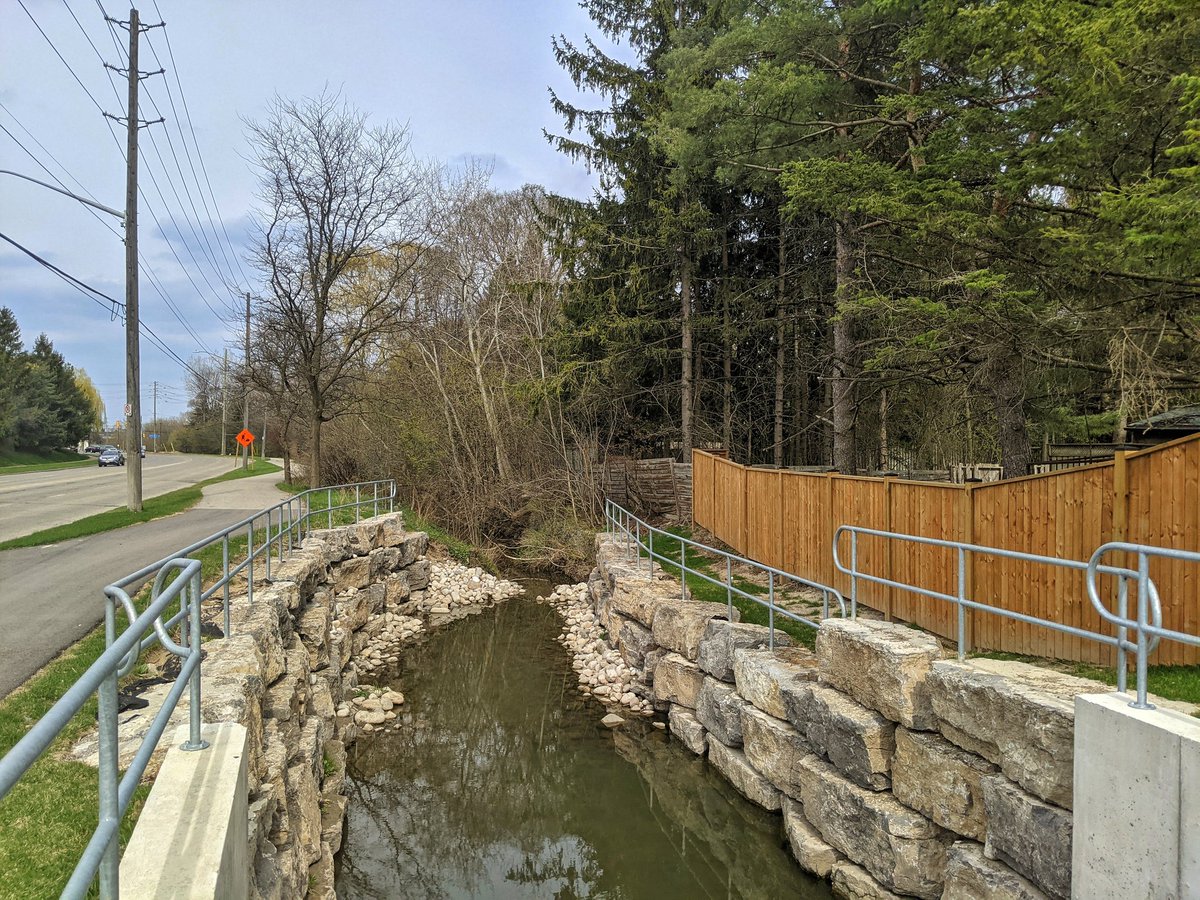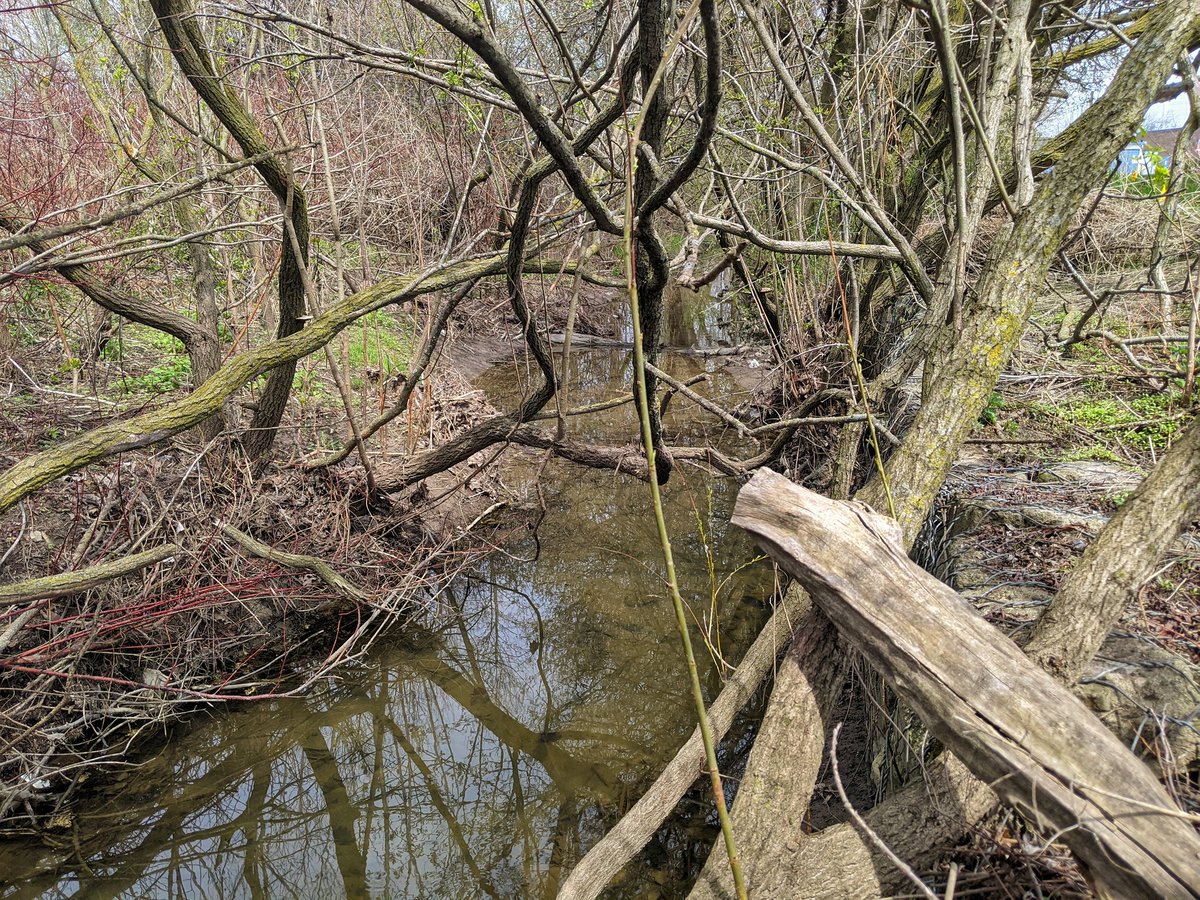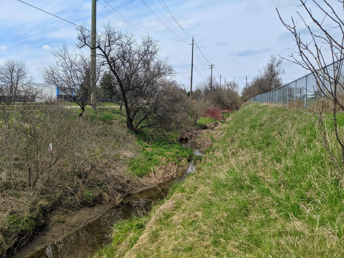 The dreaded Weber-Northfield detour. I finally get back to Forwell Creek at the Conestoga Parkway and the Northfield overpass. At this point, it’s a bit of a straight ditch. Not intermittent though, it’s deep with good flow.