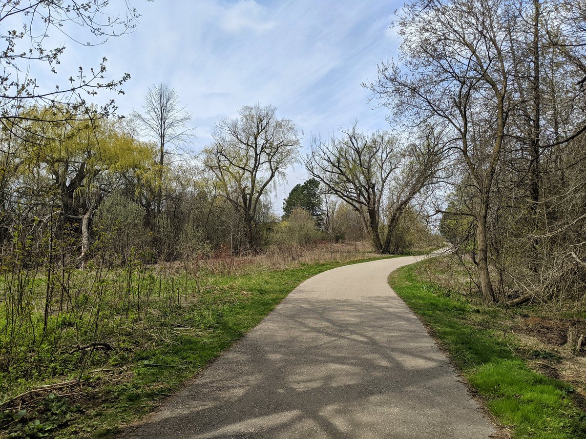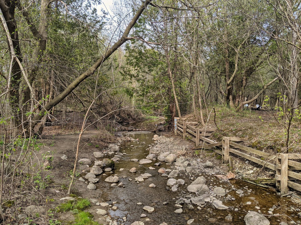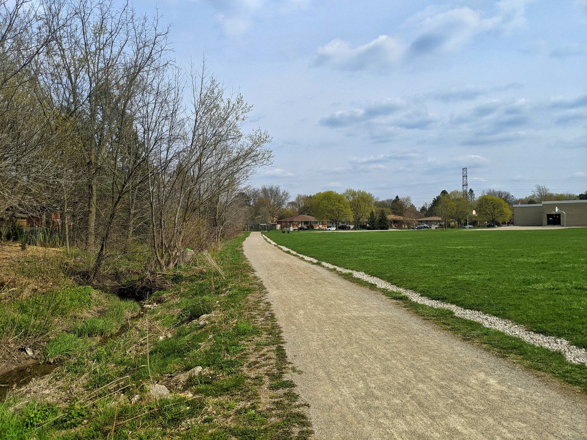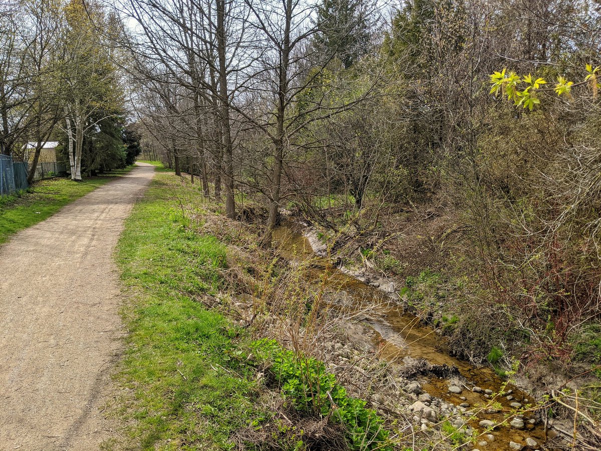 West of Weber Street, and back into Waterloo proper. There’s a weird fork between two concrete channels. The northern one is a continuation of Forwell Creek in some sense, and it is paralleled by a quaint trail.