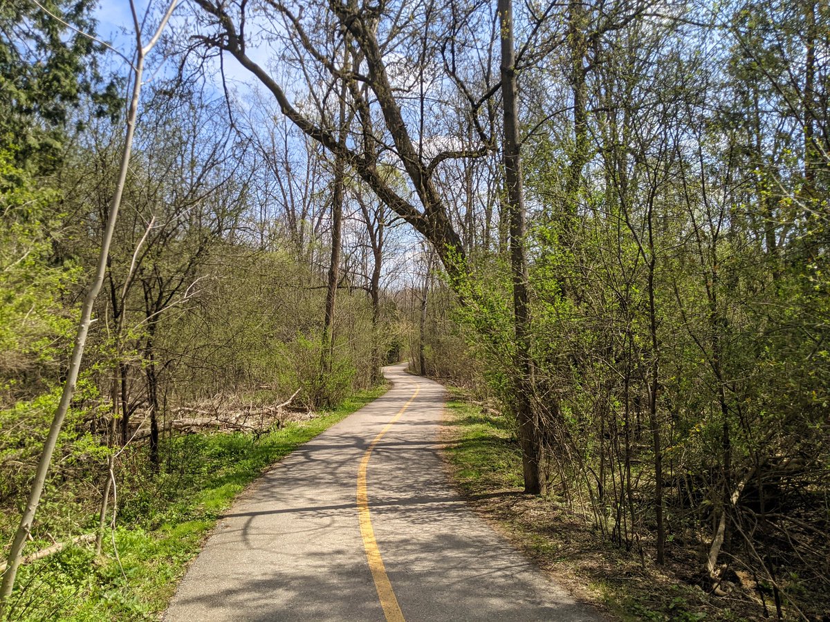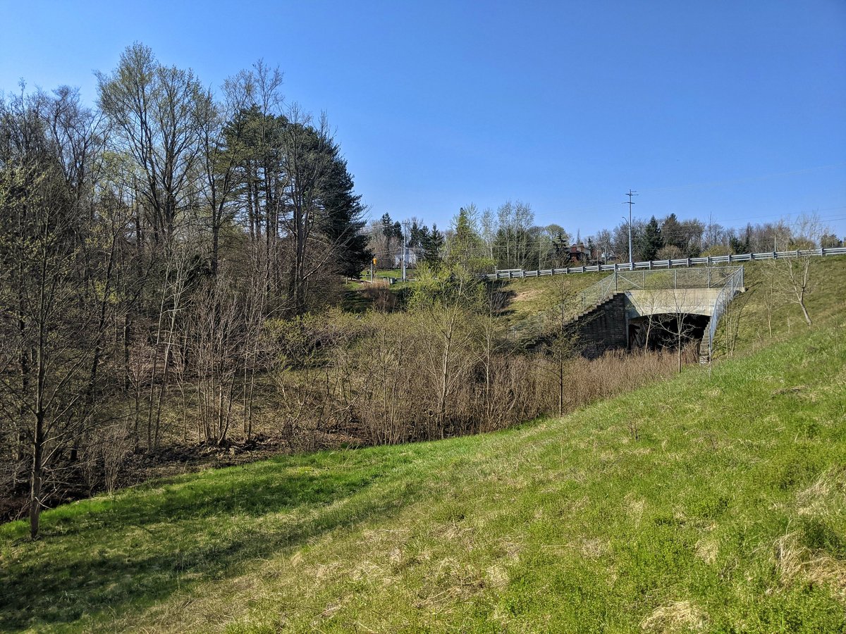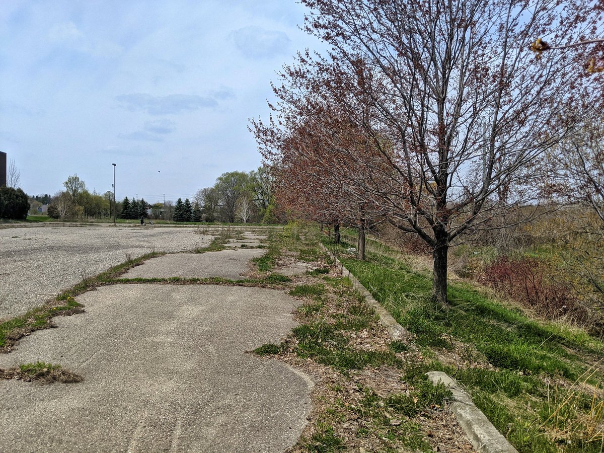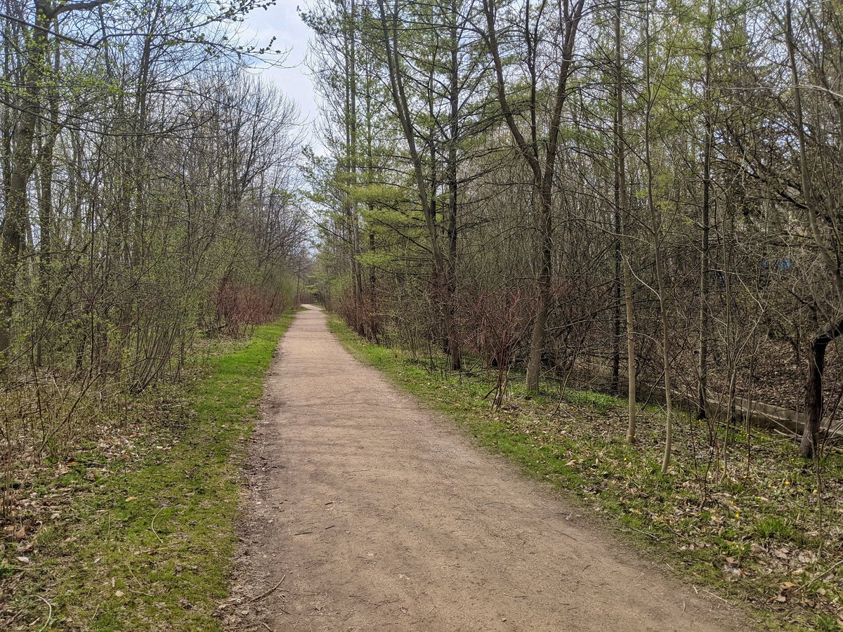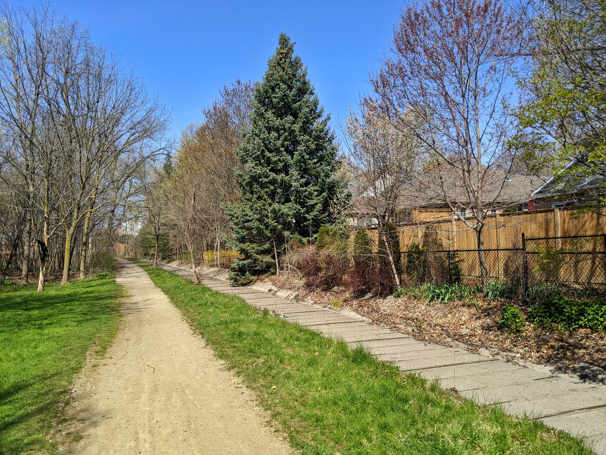 West of Weber Street, and back into Waterloo proper. There’s a weird fork between two concrete channels. The northern one is a continuation of Forwell Creek in some sense, and it is paralleled by a quaint trail.