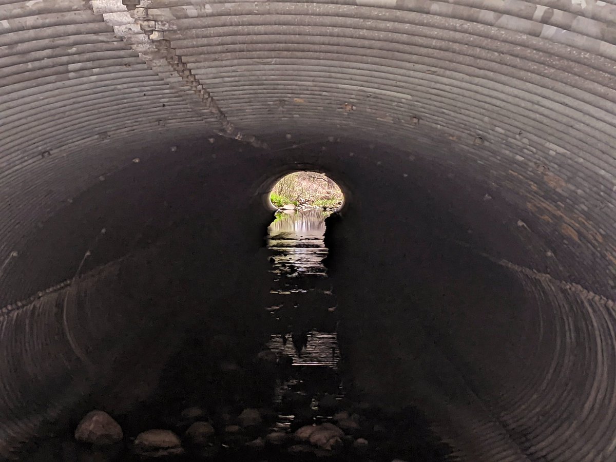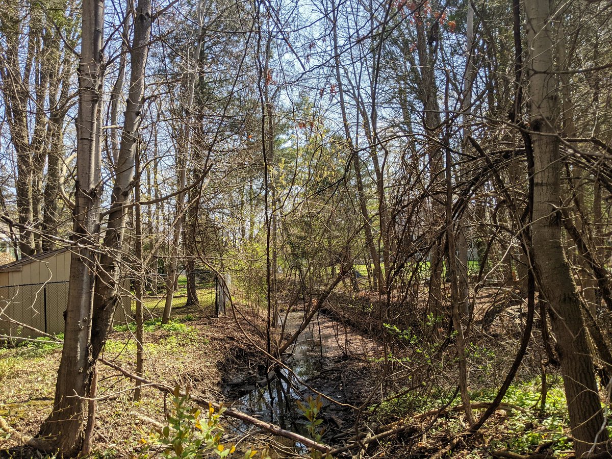 The pond outlet establishes some baseflow, but it’s not far downstream until the south branch dives behind backyards. That’s it for Colonial Creek, now onto Forwell.