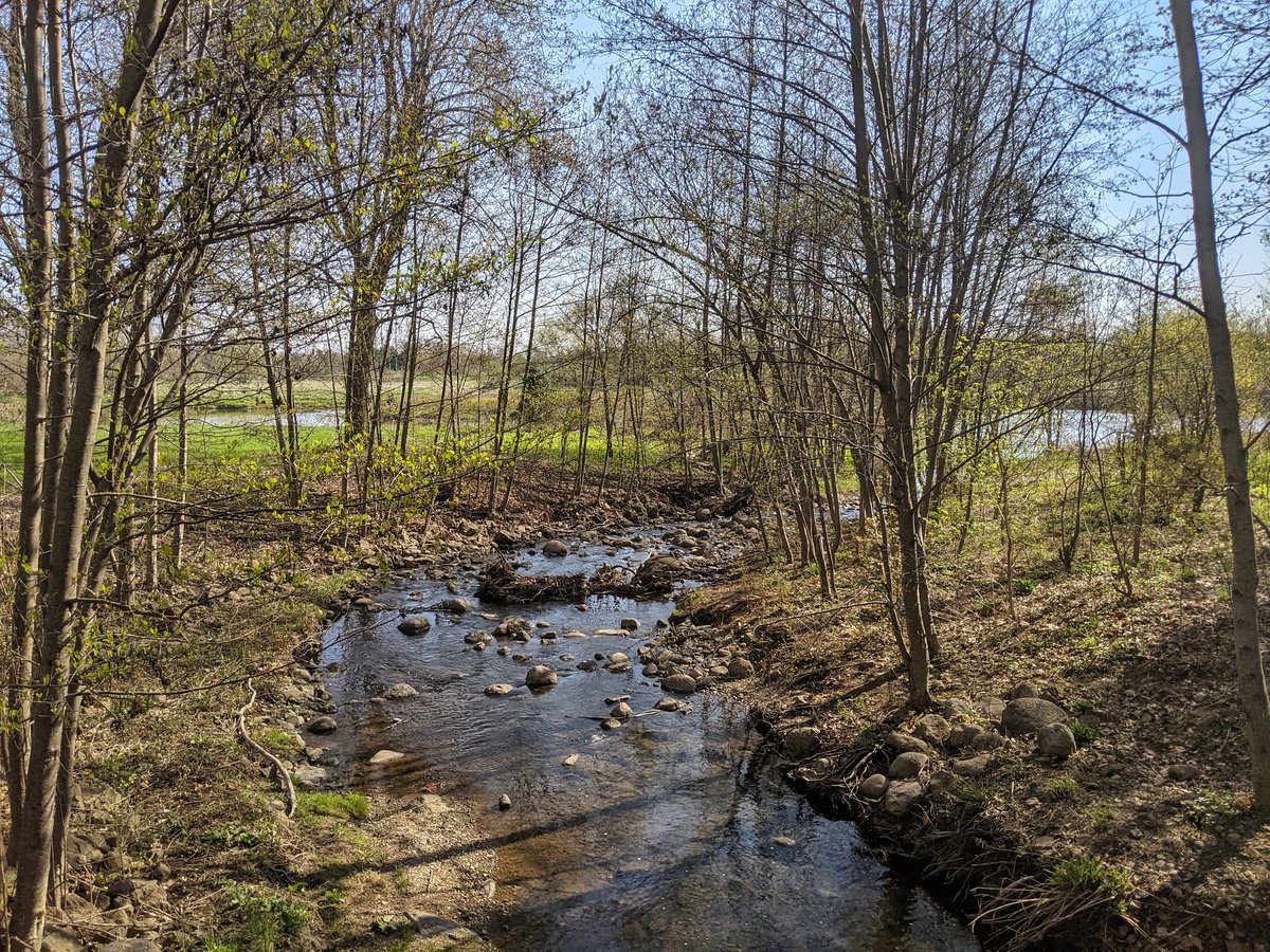 Good morning from east Waterloo. I’ll be following three creeks today. The first is Colonial Creek, and I’m starting here at its confluence with the Grand River. After that, I’ll follow Forwell and Cedar Creeks, tributaries of Laurel Creek. Let’s go.